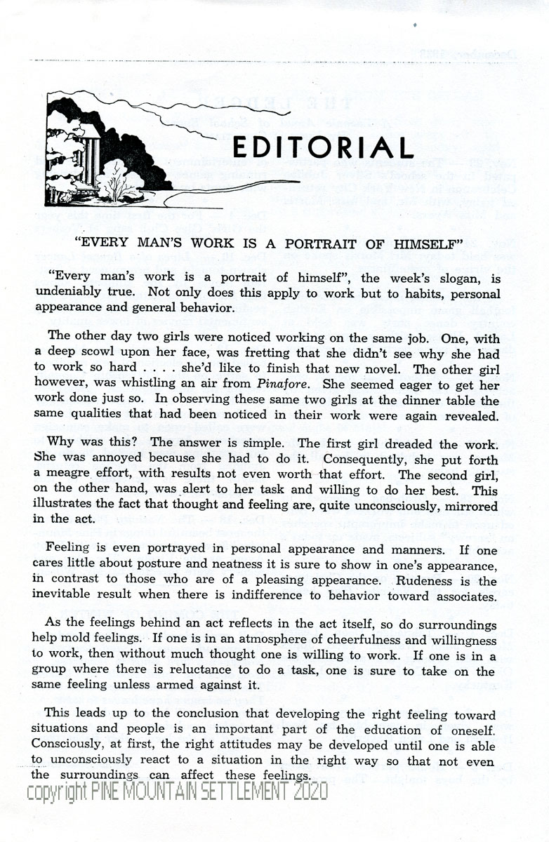 “The Pine Mountain Alumni Association was organized at a recent meeting… Officers were elected, a constitution was formulated, and a quarterly publication will be sent to all members.”