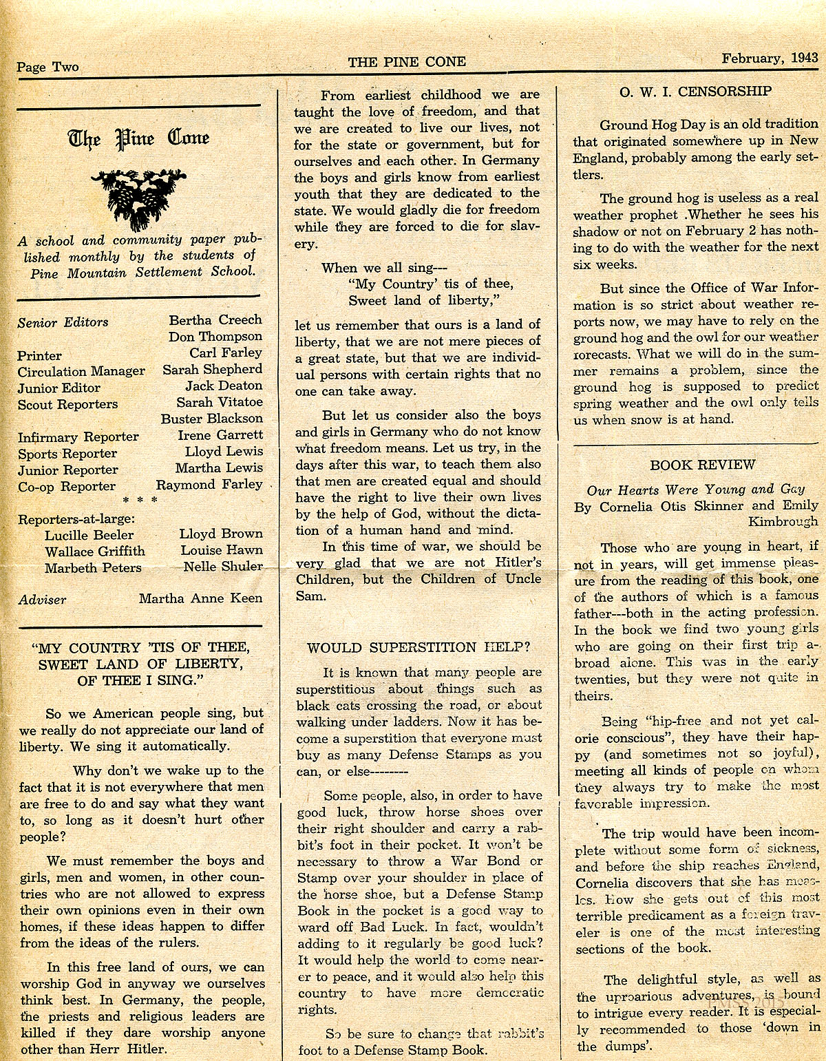 - Pine Cone 1943 Feb, page 2. [pinecone_1943_02_002.jpg]