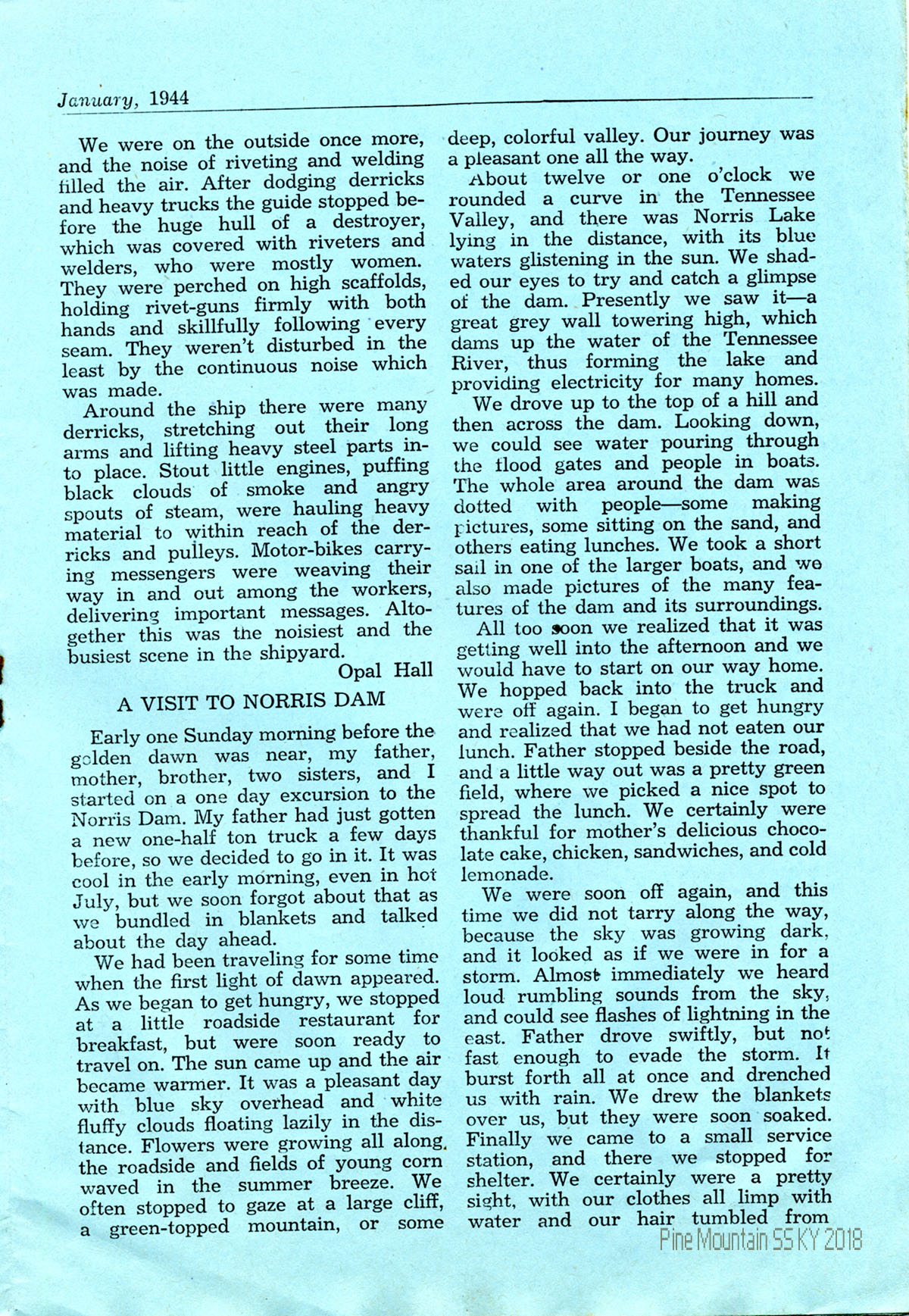 “A VISIT TO NORRIS DAM” by Audrey Boggs – Describes a visit to Tennessee Valley and Norris Lake by her family.