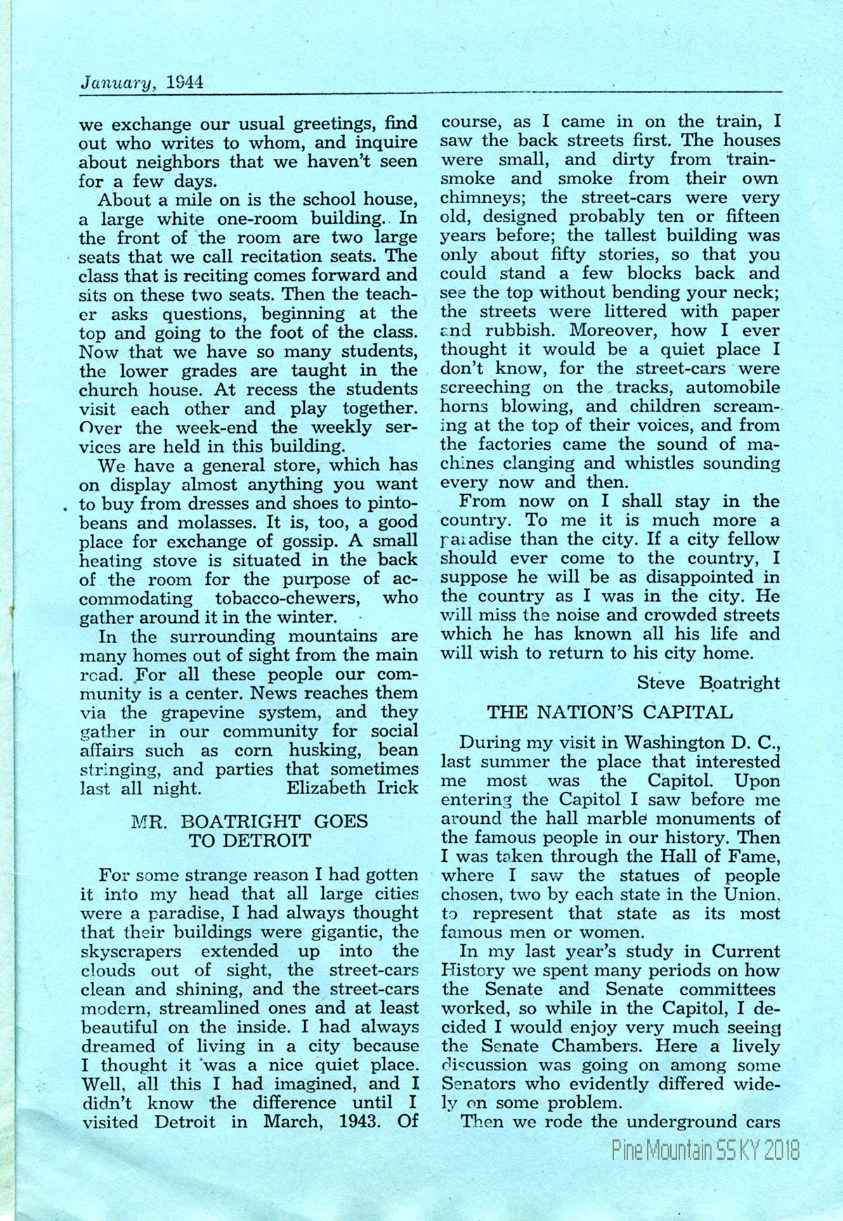 “A MOUNTAIN COMMUNITY” by Elizabeth Irick – Describes her hometown of Osborn.