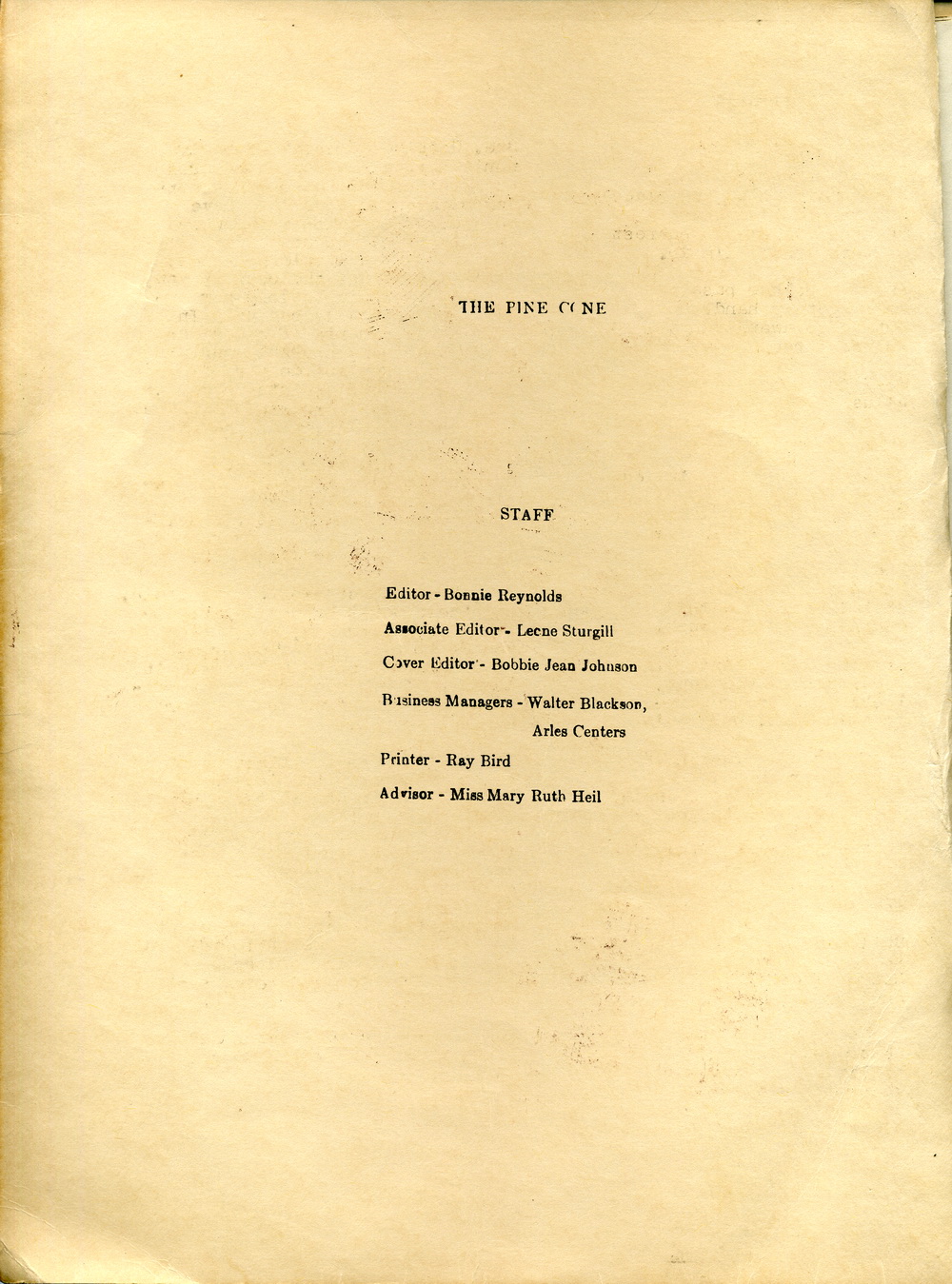 TAGS: The Pine Cone 1948 October, student publications, John A. Spelman III block print, editorials, poems, campus activities, essays, new and former workers, former students, Fair Day, Freedom Train