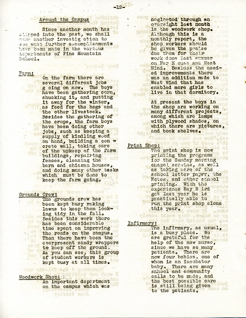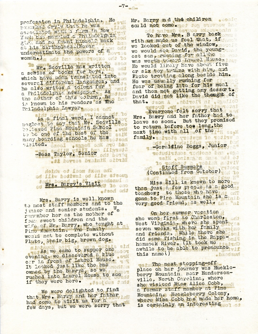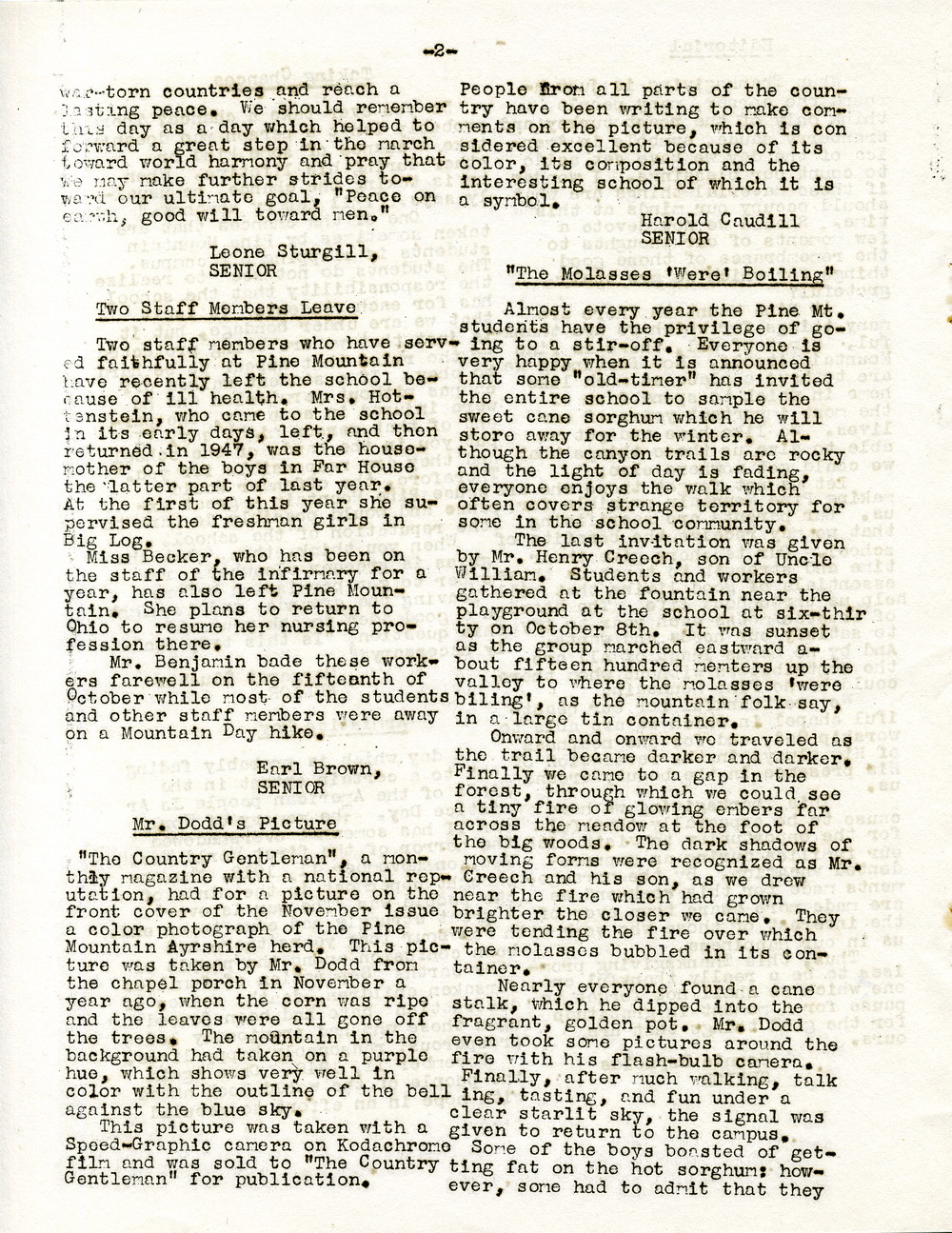 “Two Staff Members Leave” – Earl Brown [Due to ill health: Mrs. Hottenstein, Far House housemother and Big Log; Miss Becker, infirmary nurse]