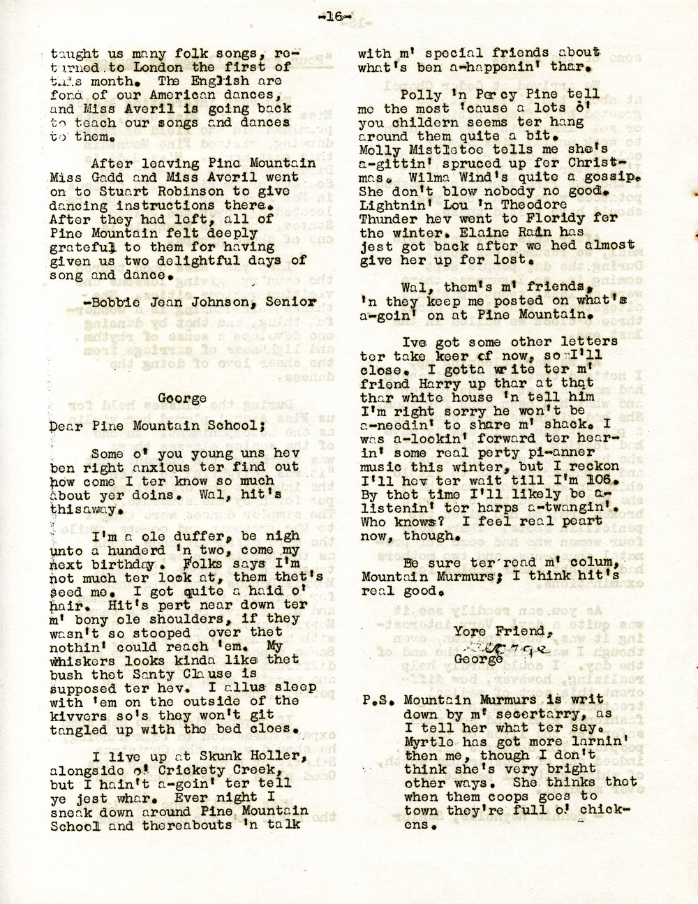 “George: Dear Pine Mountain School” – [George (of the Gorge)]*