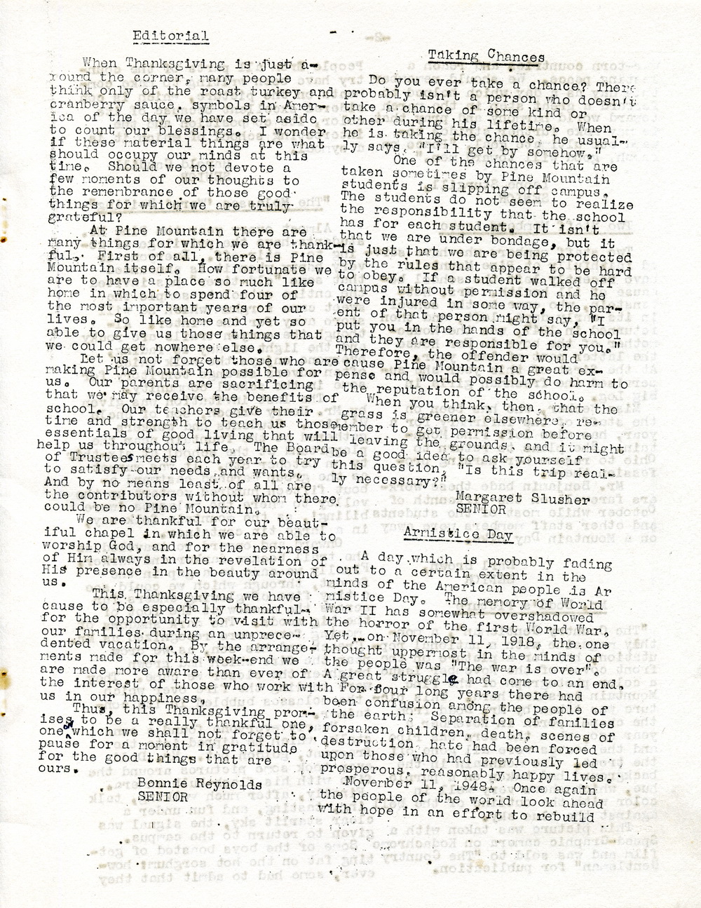 TAGS: Pine Cone 1948 November, student publications, editorials, narratives, staff news, student activities, visitors, parties, sports, poems