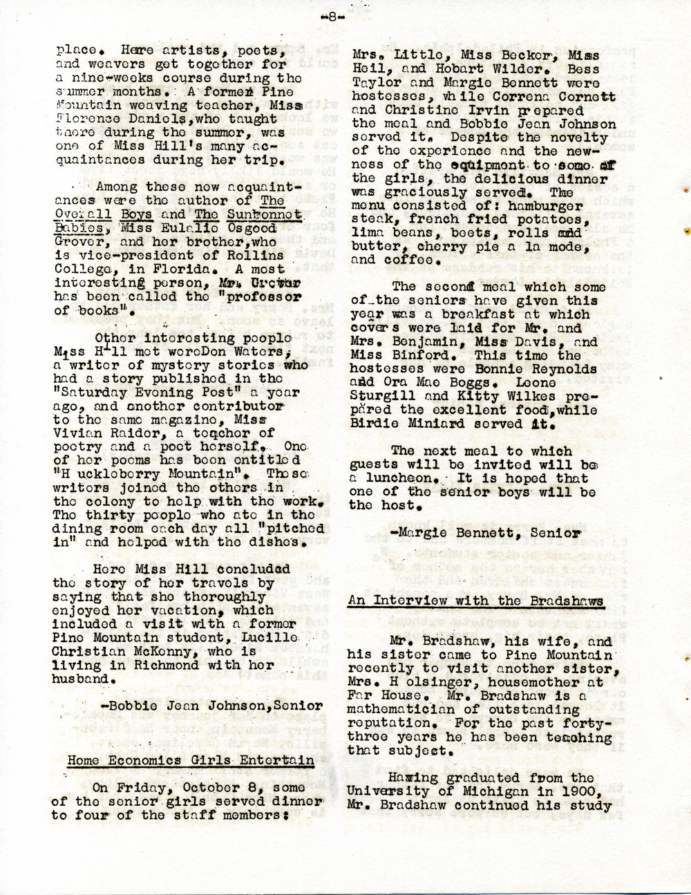 “An Interview with the Bradshaws” – [Mr. Bradshaw, brother of worker Mrs. Holsinger, was a mathematician interested in converging series theory.]