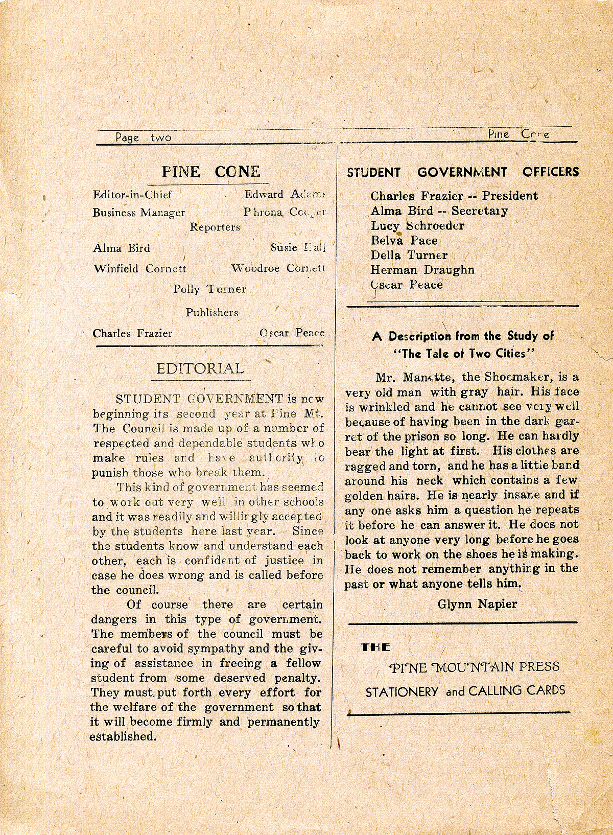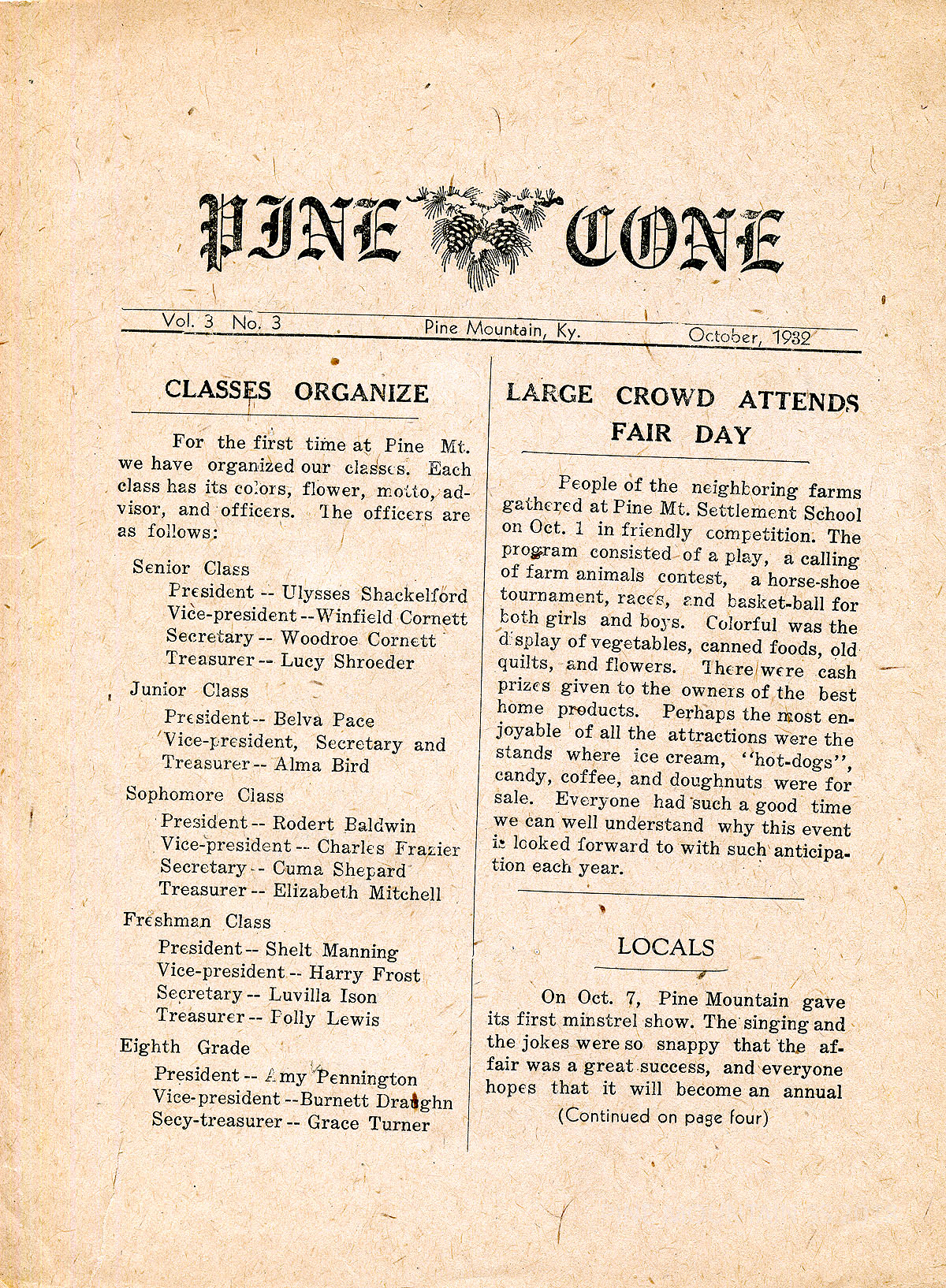 TAGS: Pine Cone 1932 October, class officers, Fair Day, minstrel shows, Student Government, essays, sports, local news