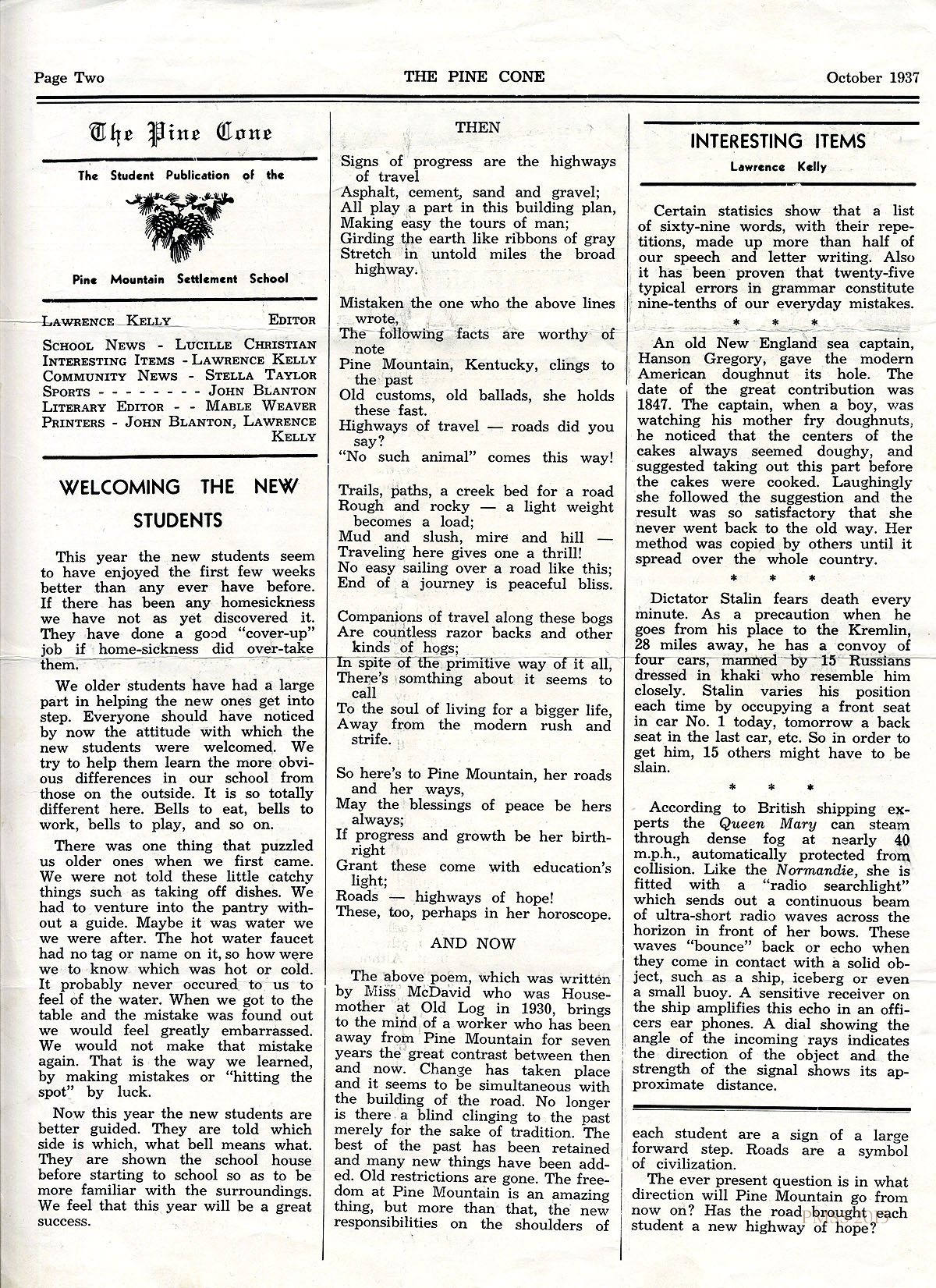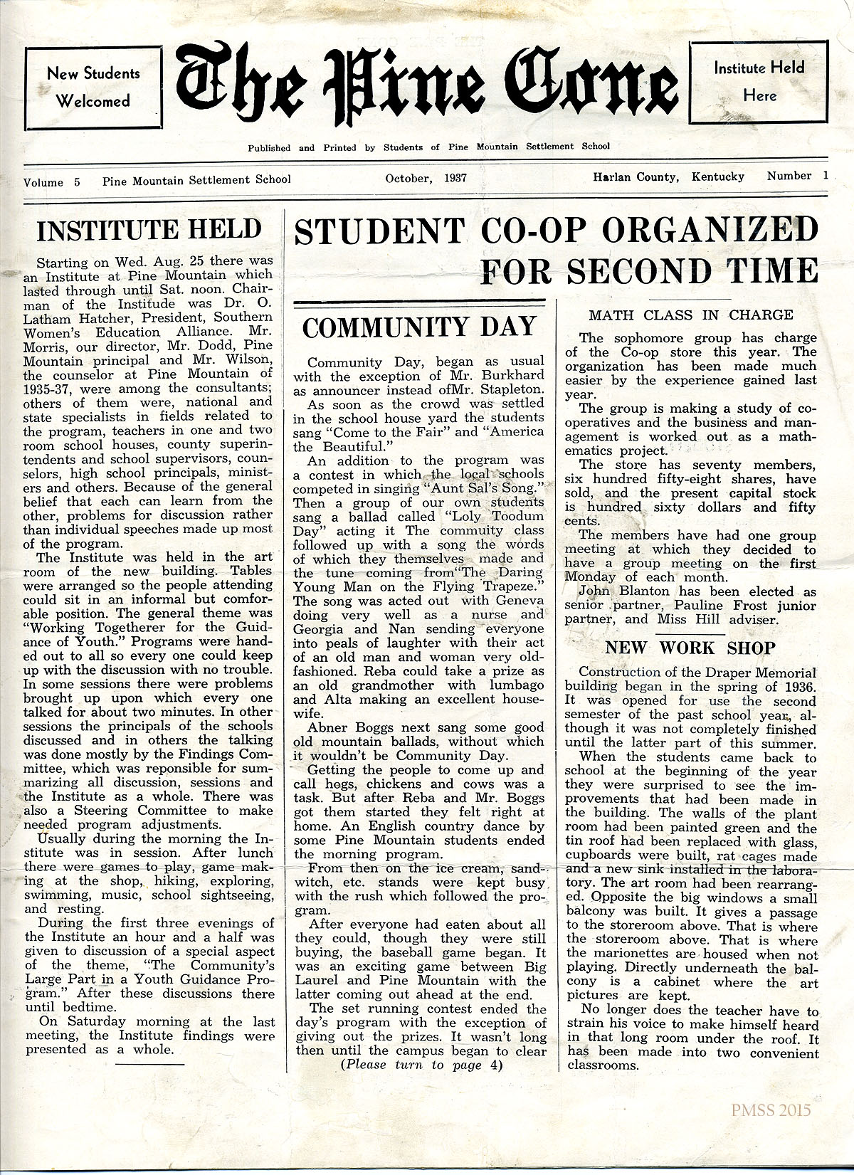 “THE PINE CONE: The Student Publication of the Pine Mountain Settlement School”