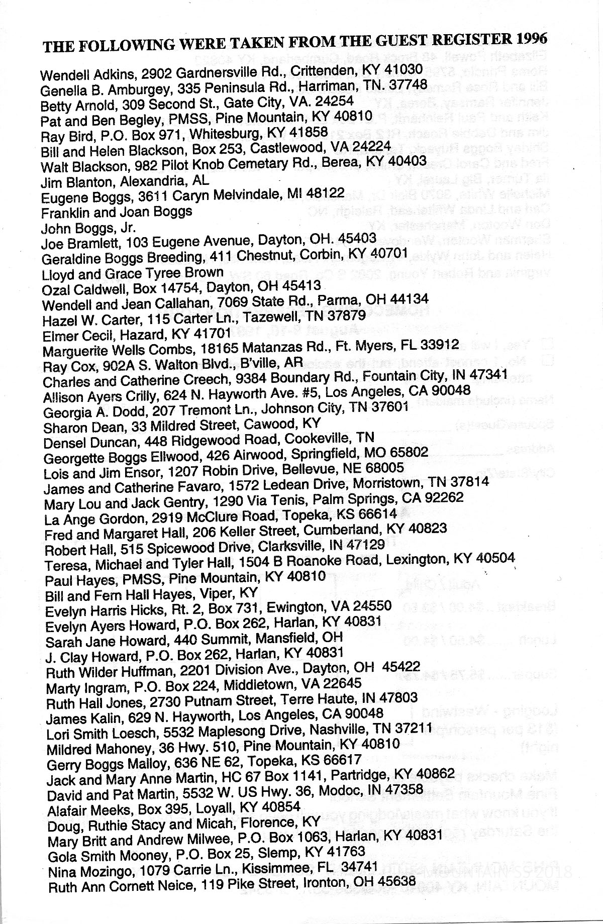 [1997_alum_friend_newsletter_005.jpg] A printed list of names and addresses, “taken from the guest register 1996.”