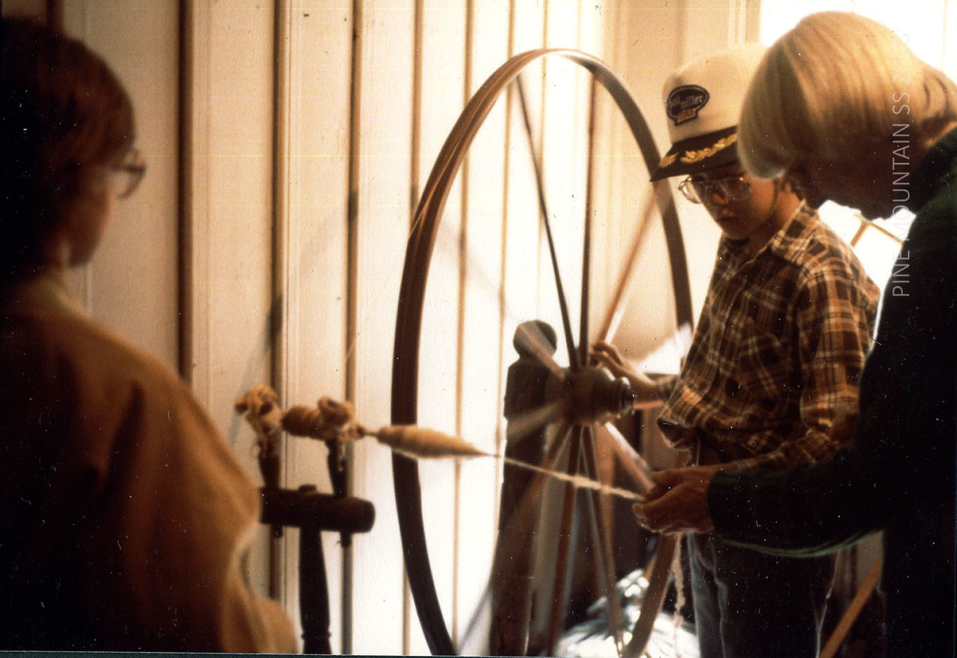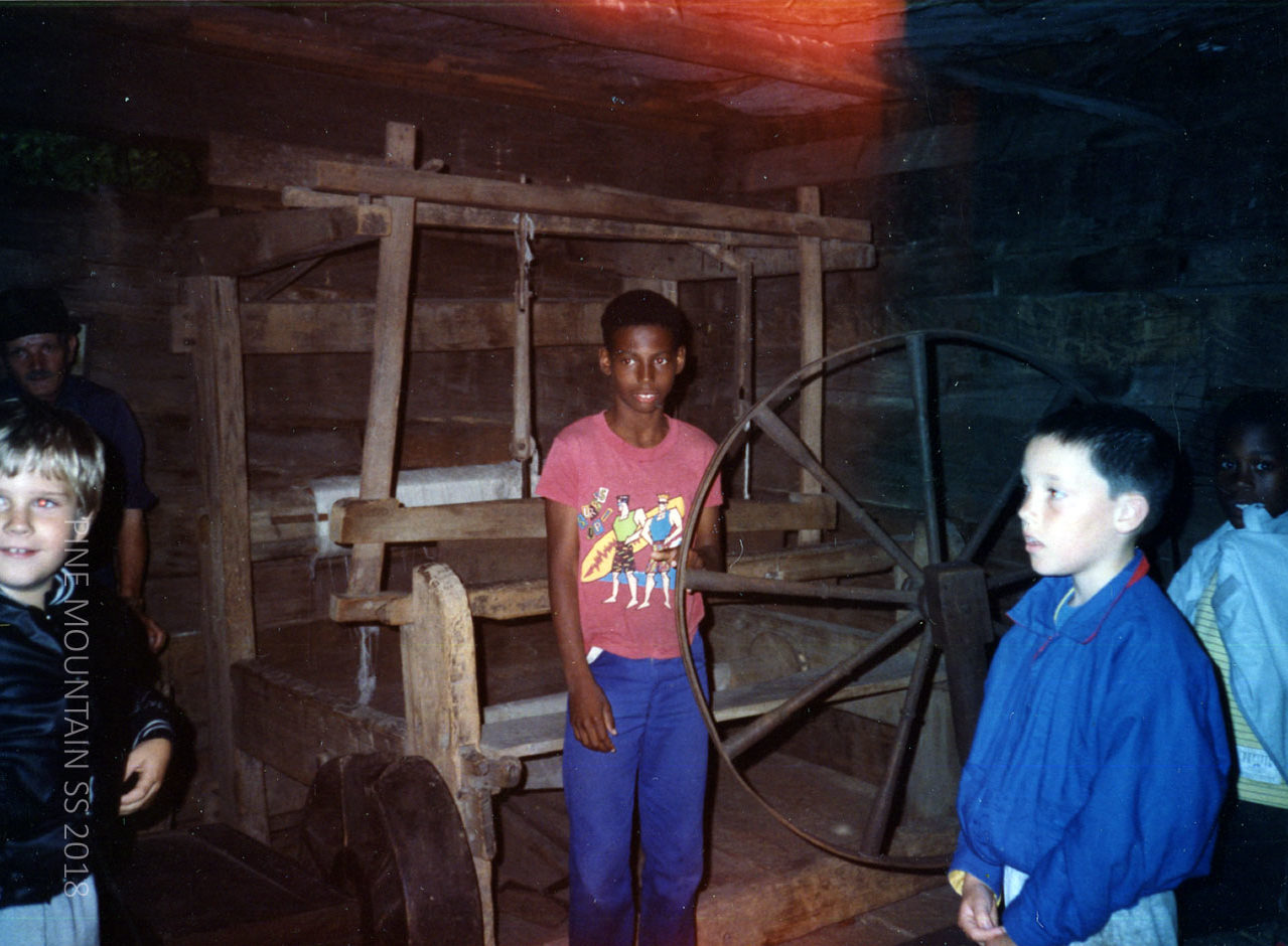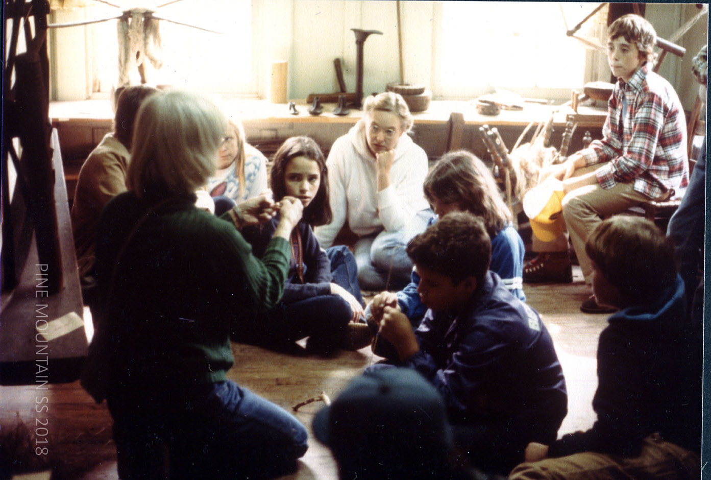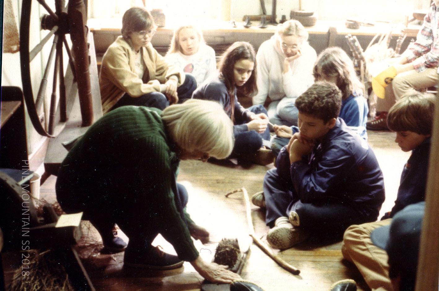 The following general views of children in the Pine Mountain Settlement School Environmental Education Program in the late 1970s and early 1980s are participating in the Native Americans and Early Settlers module. Many of the color photographs focus on the activities of the specific EE Program module. The photographs capture various schools, children, teachers, and PMSS staff.