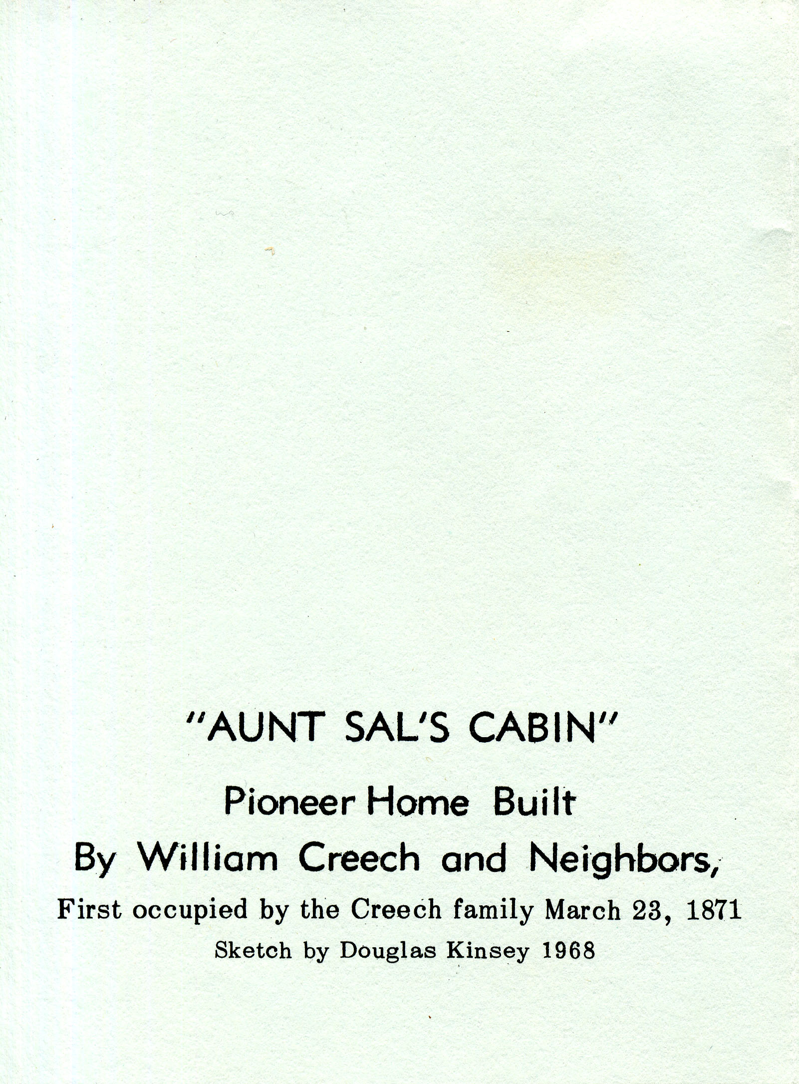 TAGS: PMSS calendar 1971, Pine Mountain Settlement School, Aunt Sal’s Cabin, Creech Cabin, log cabins, Douglas Kinsey, Berea College Art Department, environmental education program, “Early Settlers”