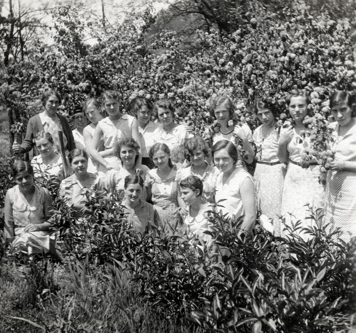 - 10_2461 Laurel House Girls, May 1933. Miss Wallace, Miss Cold, Alice Miniard, Lucy Schneider, Alma Bird, Cooper, Chloe Smith, Bertie Wilson, Polly Turner. [098_IX_students_10_2461001.jpg]