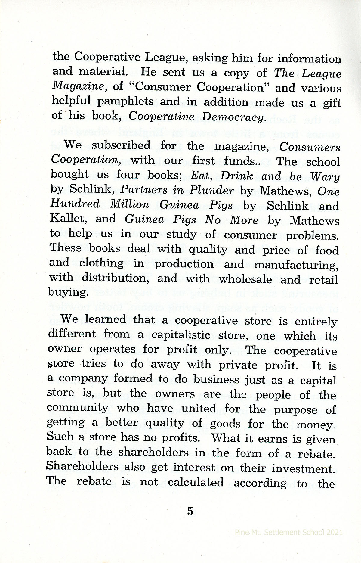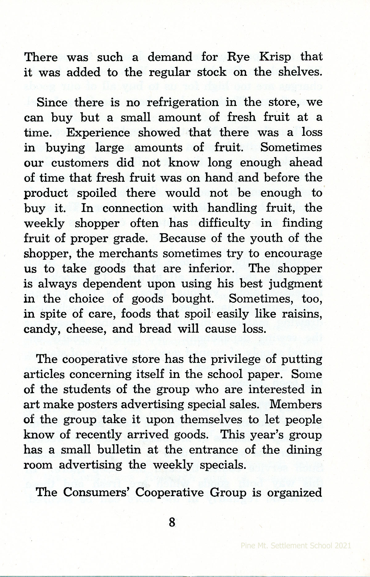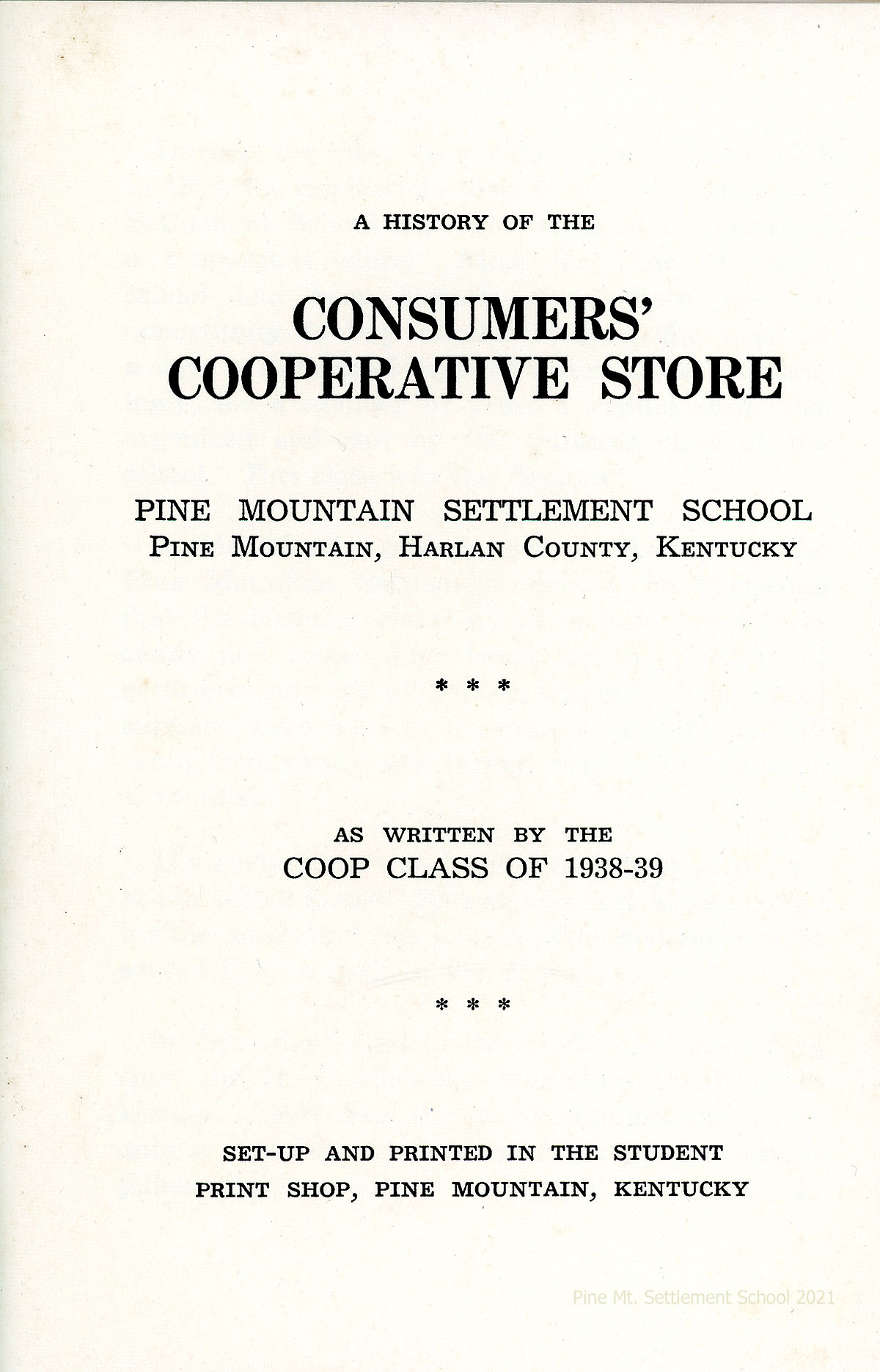 For the 1938-1939 school year a small booklet, Consumers’ Cooperative Store was developed for the Pine Mountain Settlement School curriculum. It acted as a guide for students who became members and for the community that also participated.