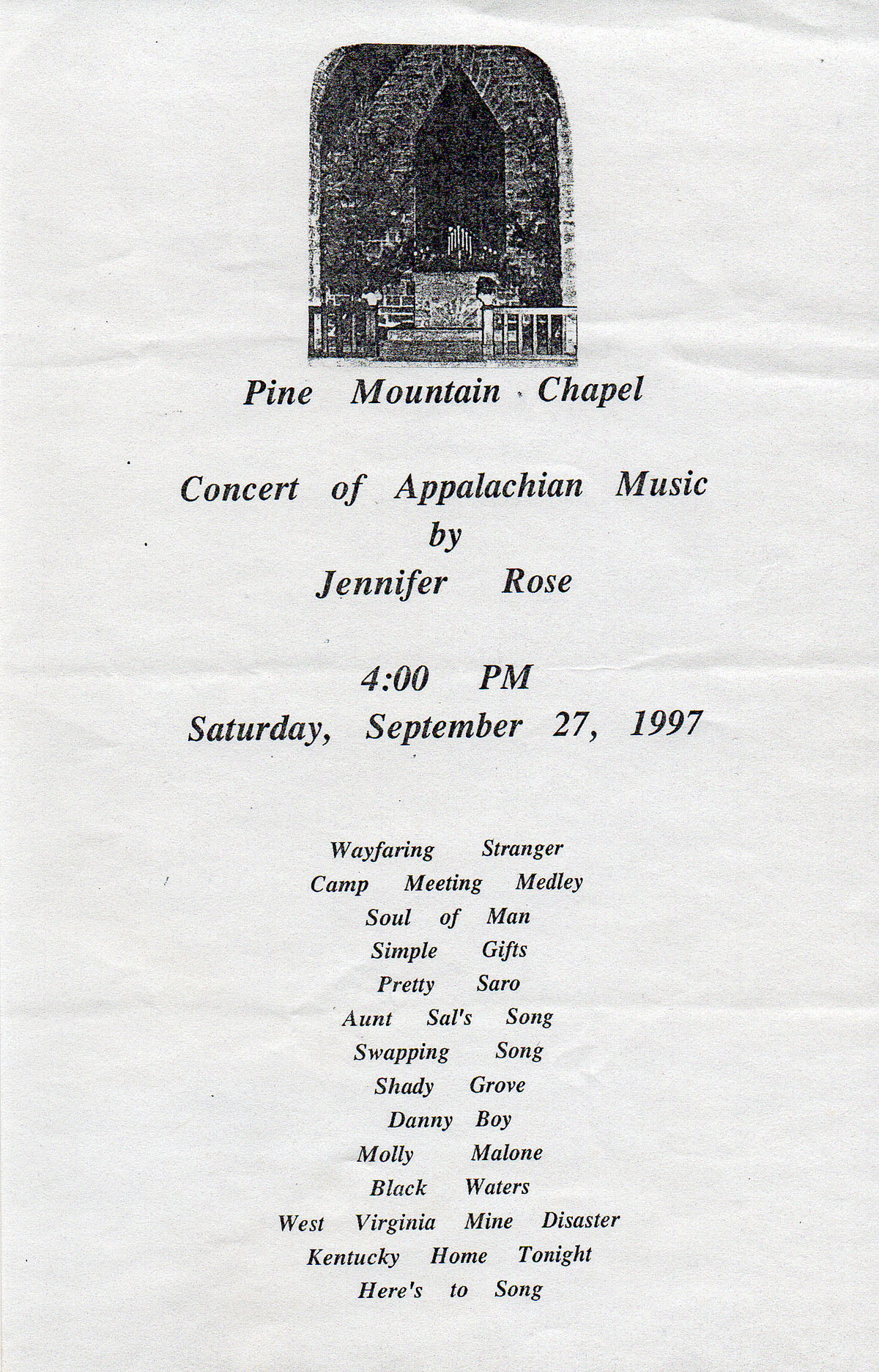 5. Program for Concert of Appalachian Music given by Jennifer Rose the afternoon of the dedication