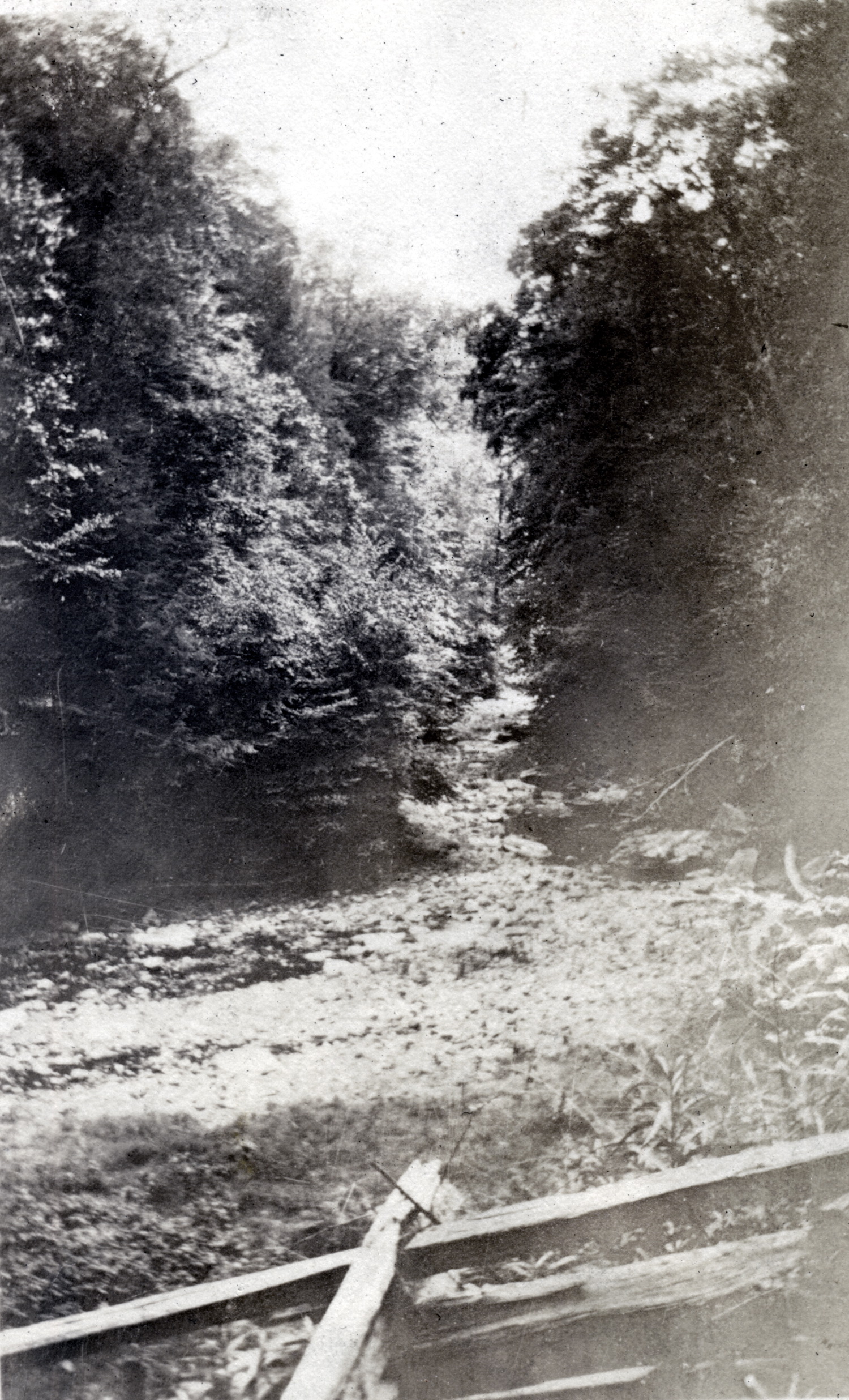 - Near Medical Settlement, Big Laurel. “Footlog across Greasy Five Feet [creek] and covering in high water. December 1924.”nesb_017_mod.jpg