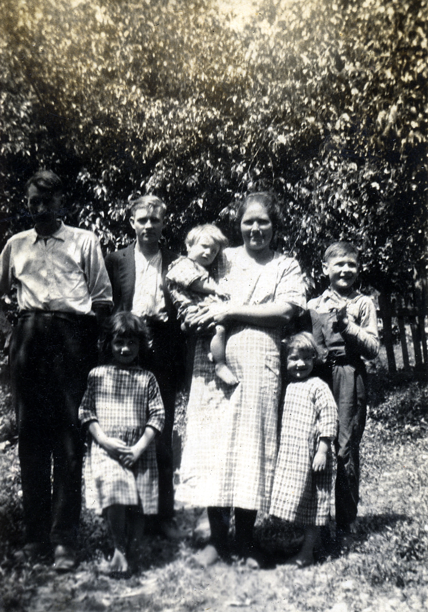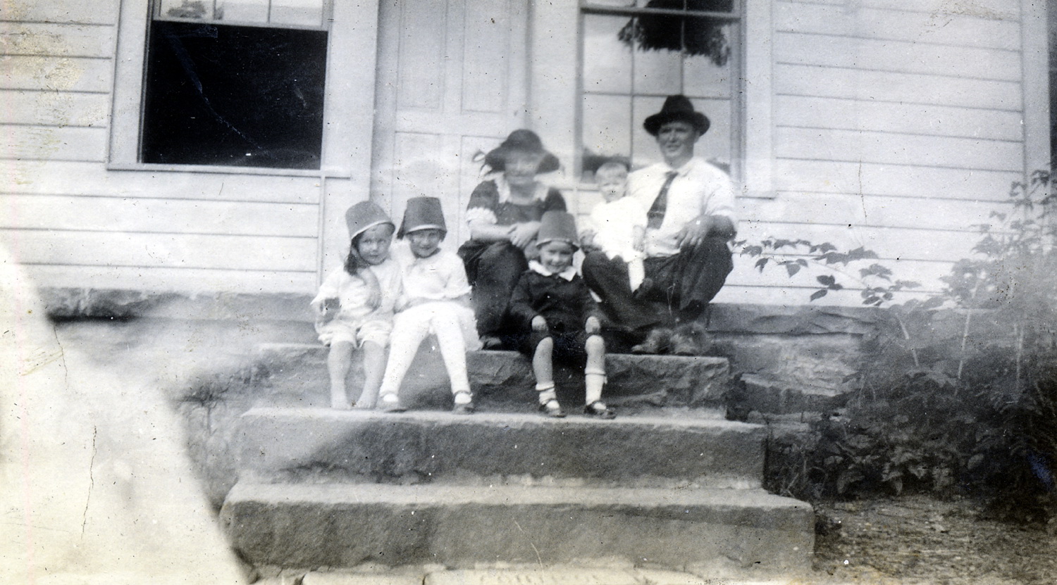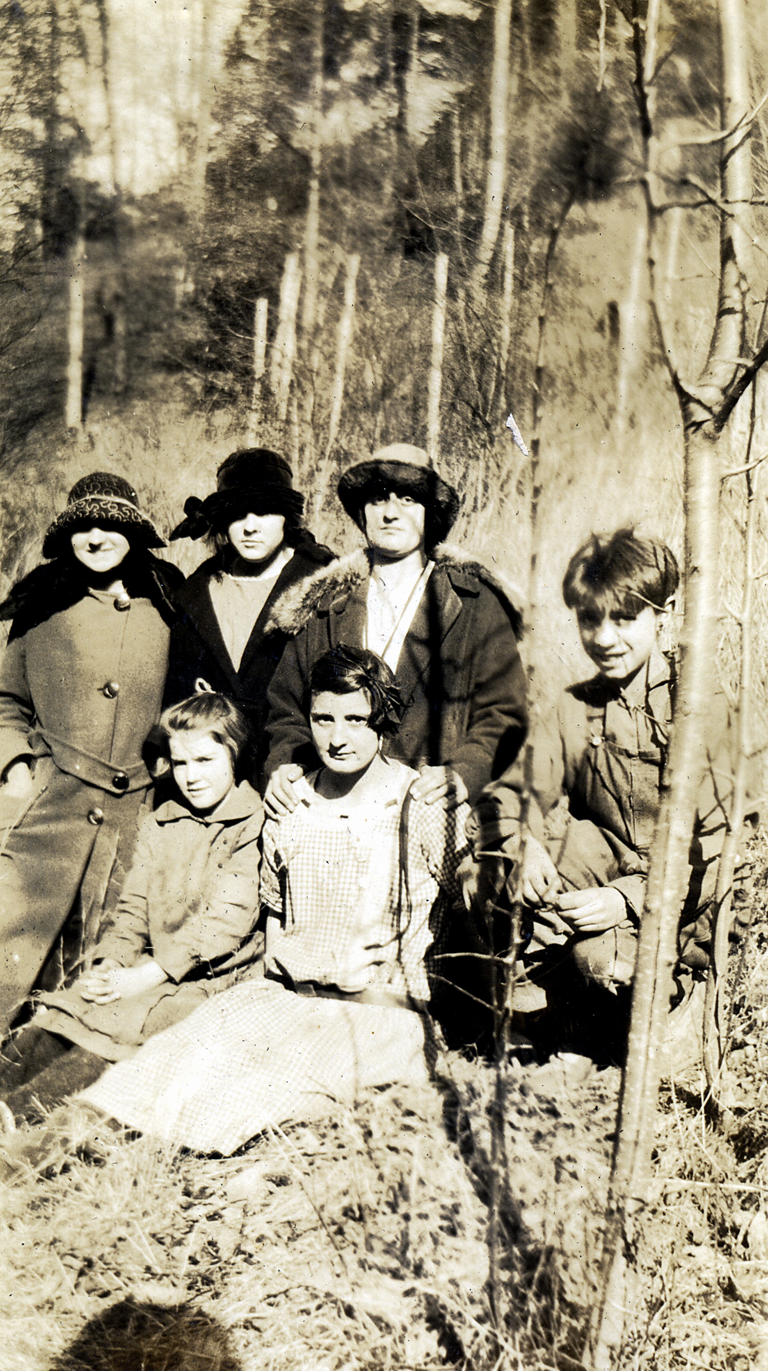 - “The Metcalfs.” At far left is Sarah Metcalf. The man in the picture is William Metcalf. The woman to his left is Dora Metcalf and Edna is the tall girl in the back. Next to her is Oceana and then George Lincoln and Ruth Ellen. (Identification by Bruce Hacker, grandson of William Metcalf.) [nesb_028_mod.jpg]