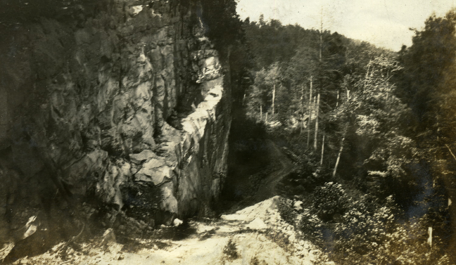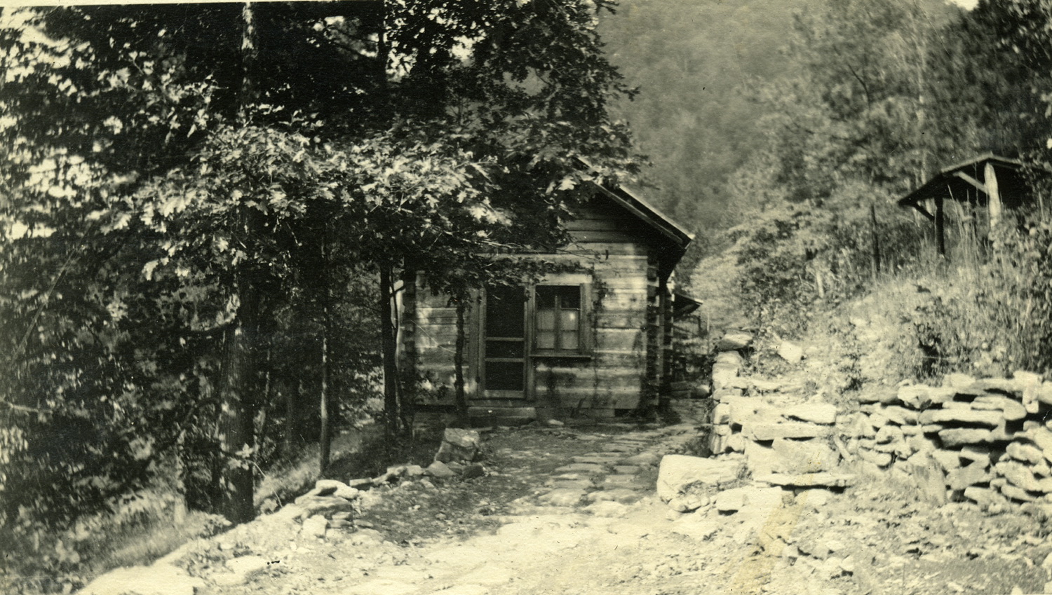 - “Pine Mountain Settlement School. 1923-4-5 – The First Glimpse” of Pine Mountain Settlement School coming from the west across Laden Trail. [nesb_071_mod.jpg]