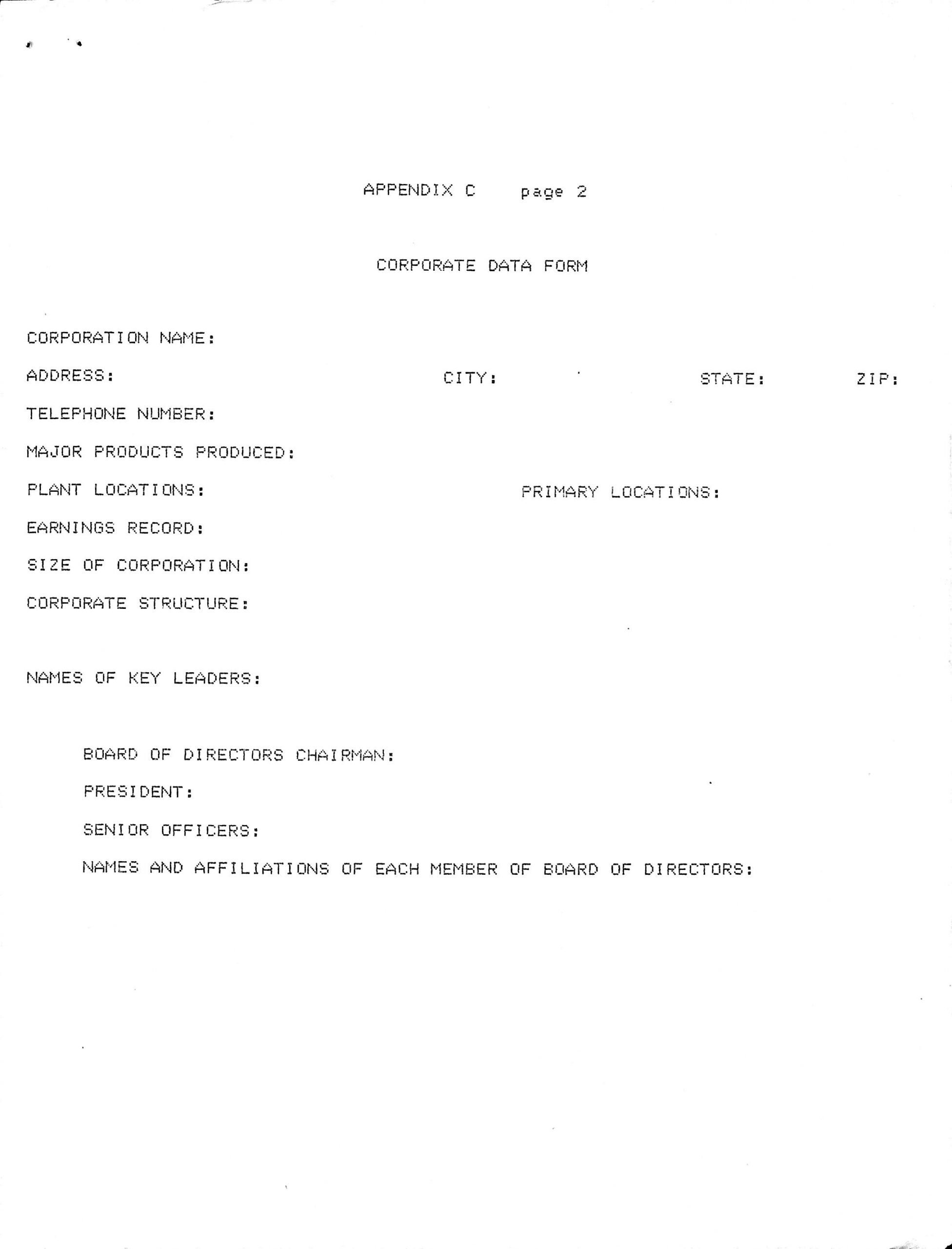 C. Corporate Relations – Research should be conducted to establish a list of state [and] local businesses and industries (See Appendix B) and to evaluate potential corporate support (see Appendix C).
