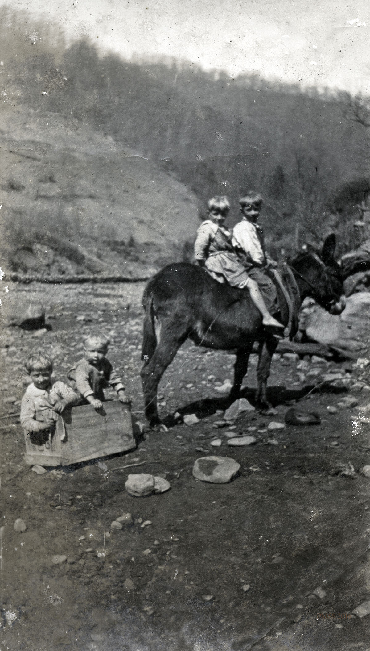 - Anon. Album. Four children. Two on mule and two in box at Big Laurel. [unknow_019_mod.jpg]