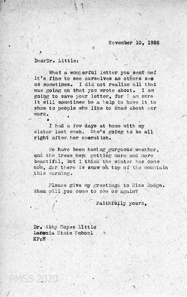 All letters from Dr. Little were written from “Laconia State School, Laconia, N.H.”