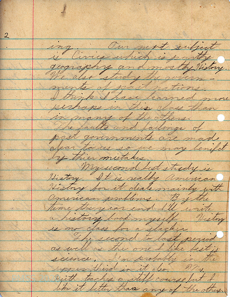 PMSS Boarding Student, September 1943 – May 1945