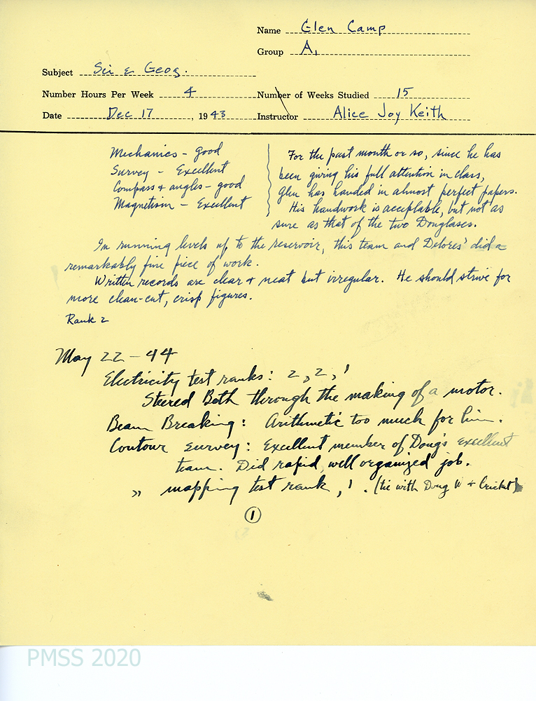[048] December 17, 1943. Student evaluation by Science and Geography teacher, Alice Joy Keith.