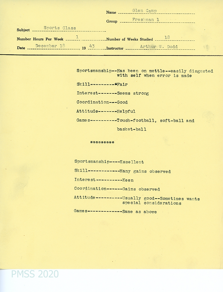 [052] December 18, 1943. Student evaluation by Sports teacher, Arthur W. Dodd.