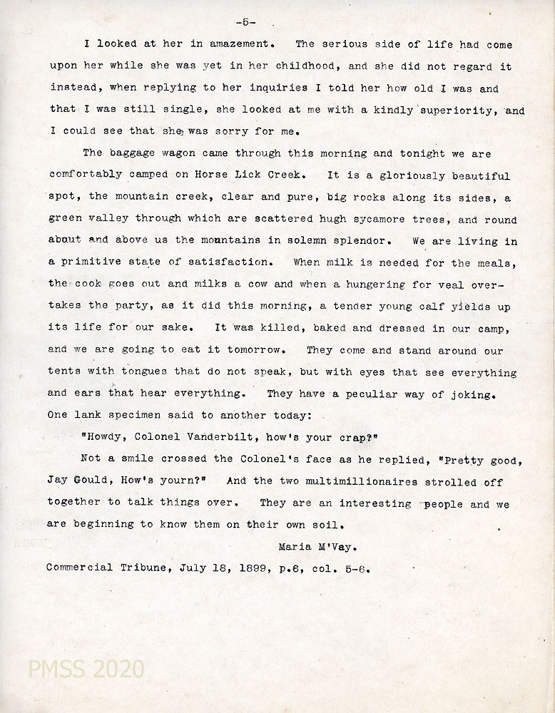 Miss McVay’s “A NOVEL EXCURSION” was published as a running account of the trip in the Cincinnati Commercial Tribune with the first publication on July 18, 1899, and the last on August 7, 1899.