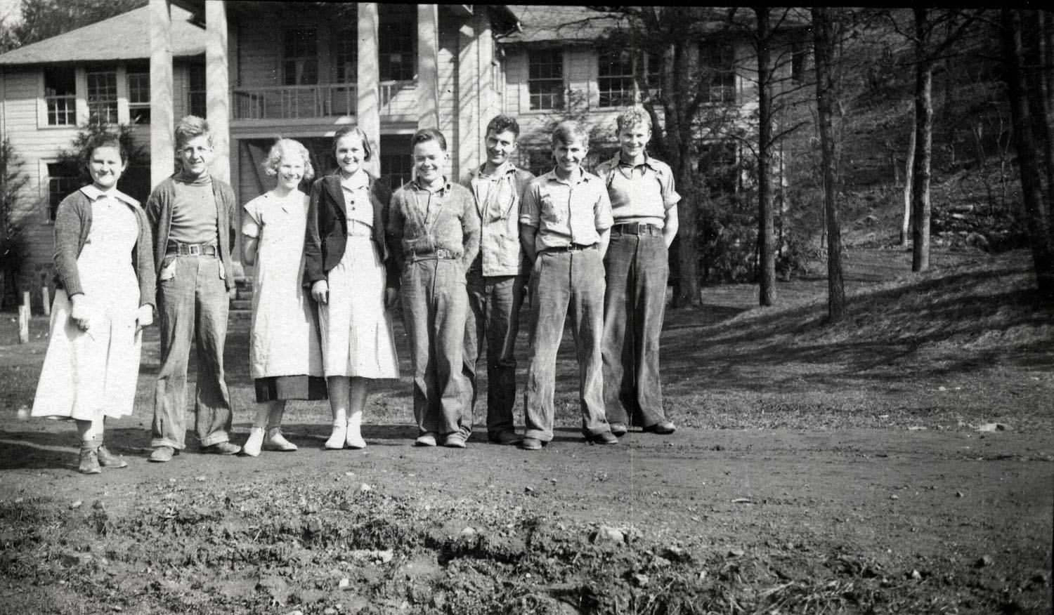02_2437 Left to rt: [?], Enoch Hall, Lucille Christian, Irene, John, Bob, John, Homer. [098_IX_students_02_2437004.jpg]