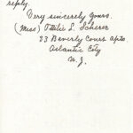 005-005c August 11, 1921. Four-page handwritten letter to Zande from Miss Ottilie L. Scherer, Atlantic City, NJ, responding to The Outlook advertisement for a nurse. She is a graduate of the Lying-In Hospital, Philadelphia, PA, class 1903. She describes her work experience at Chirurgical Hospital (Philadelphia), Williamson Trade School (Delaware Co, PA). and New Haven (CT) Orphan Asylum. She requests further information about the position.