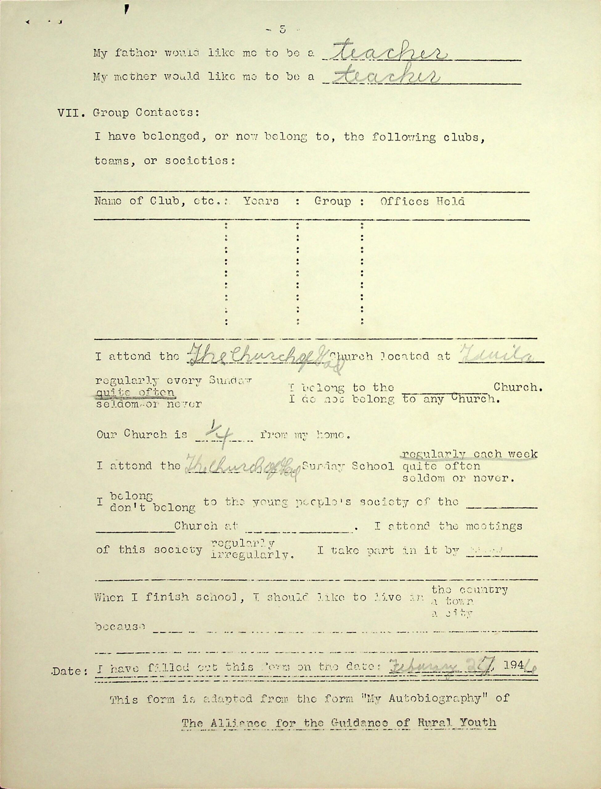 This form is adapted from the form “My Autobiography” of the Alliance for the Guidance of Rural Youth.