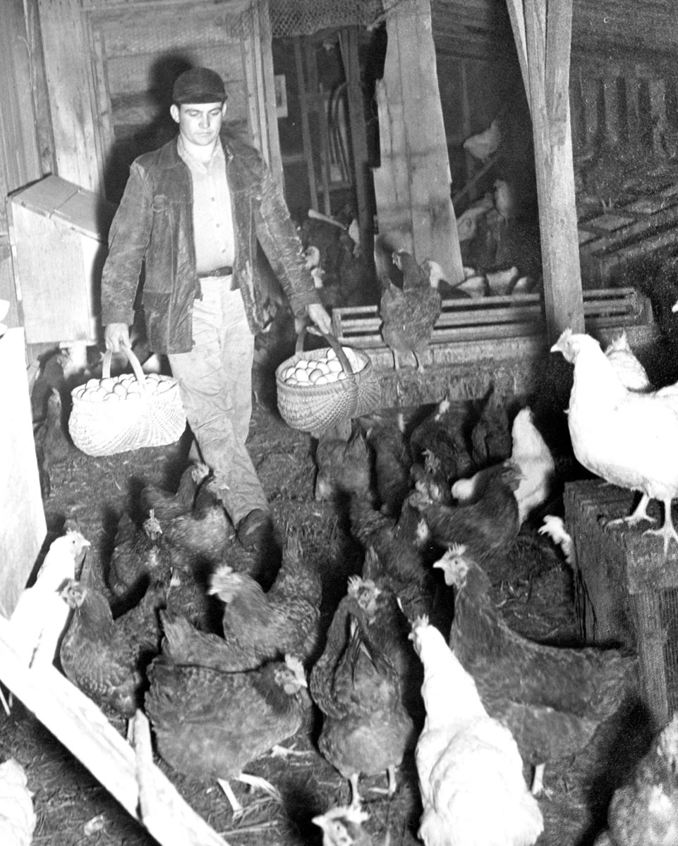 - Hobart Wilder and chickens and eggs in baskets. 06a 64_life_work_general_farm_grounds_sorghum_006a