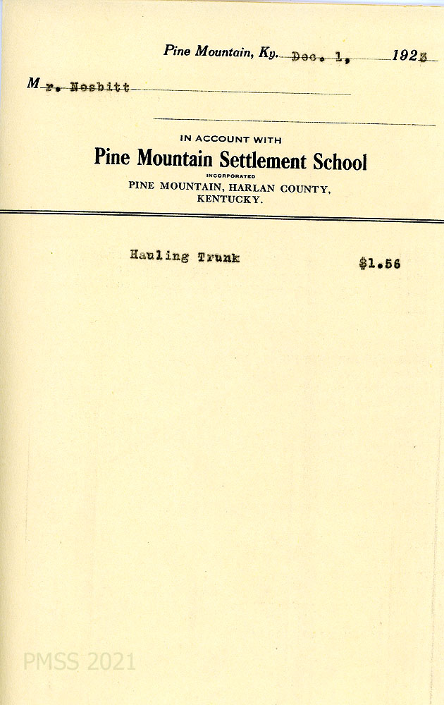 [023] December 1, 1923. A bill from PMSS to Nesbitt for “hauling trunk, $1.56.”