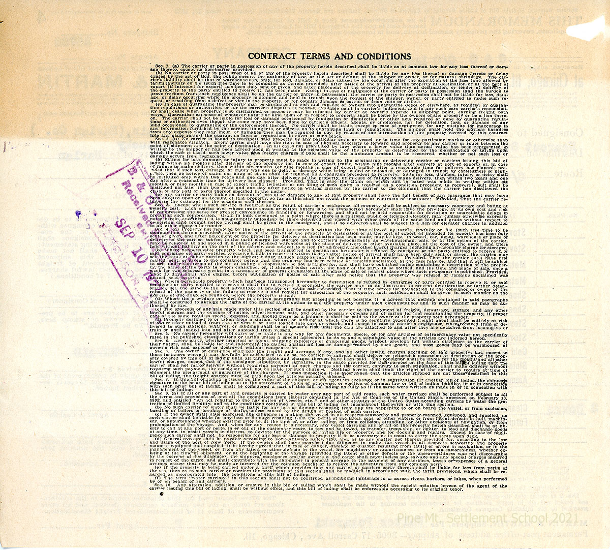 067 Reverse side of bill of lading: “Contract Terms and Conditions”