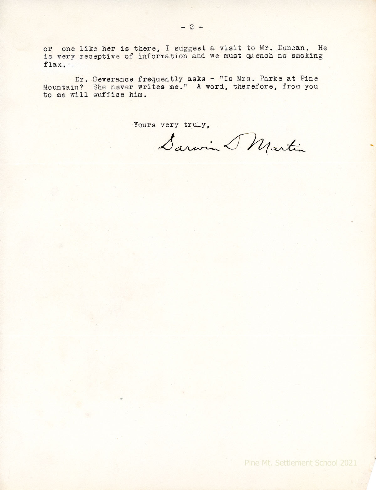 Martin is happy to supply PMSS with “Help” and compares the hardness of the water in Buffalo, his new country home on Lake Erie, and in Kentucky. He ponders how useful a Permutit water softener or collection of rainwater would benefit PMSS; suggests that an alternative to Foamite Childs fire extinguisher could be La France Fire Engine Co., Elmira, NY. Dr. Severance frequently asks if Mrs. Parke is at PMSS.