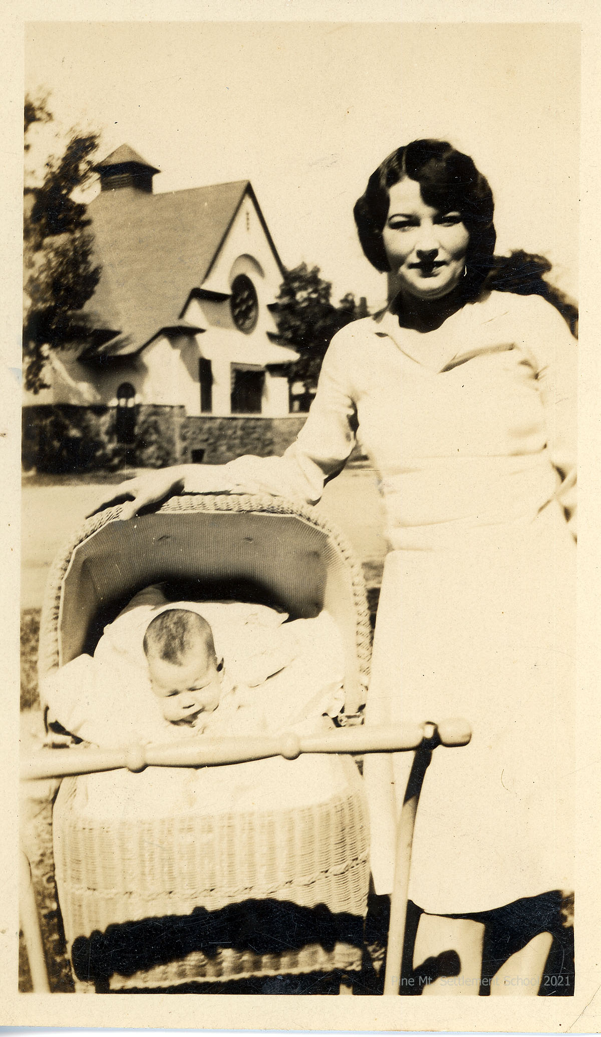 005 ”Tuesday Oct 8th, 1929 – 642” [woman standing at carriage containing a baby]