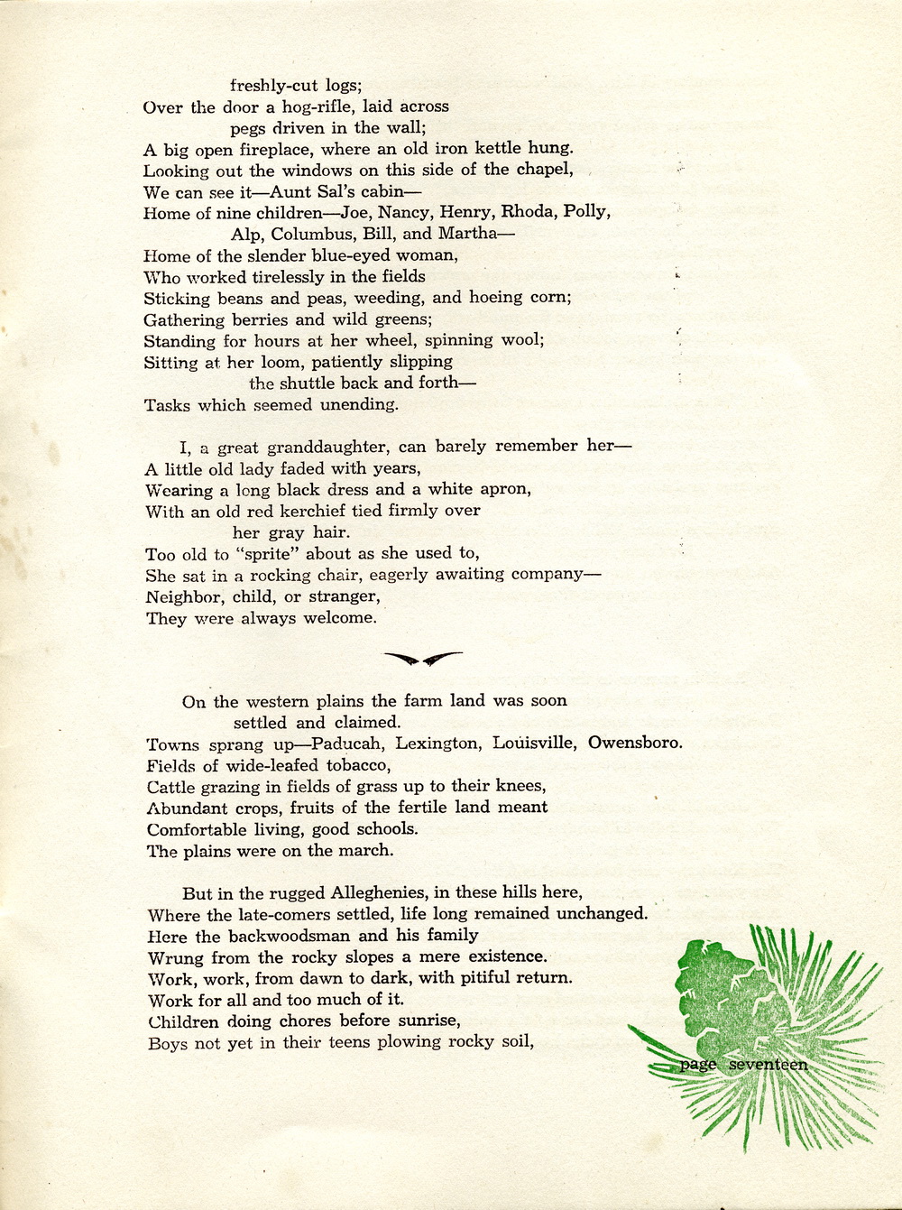 Source | Pine Mountain Settlement School Archive ; Series 17: PMSS Publications (Published by the School) ; |