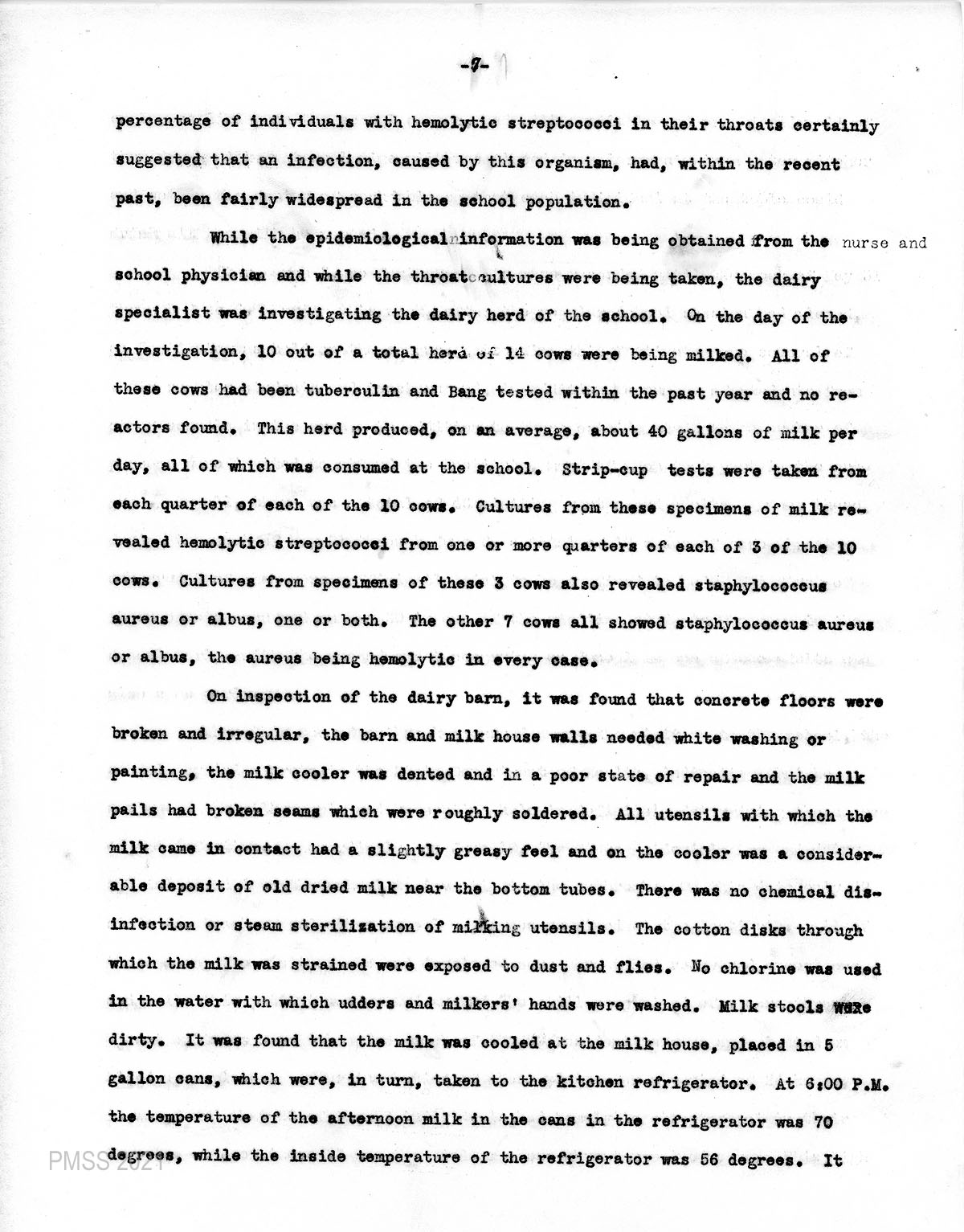 TAGS: sore throat epidemic at PMSS, disease, public health, streptococcus aureus, sore throats, strep throat, epidemics, milk, food safety, cowherds, Pine Mountain dairy, dairy cows, pasteurization, school students, medical emergencies, doctors, pathologists, laboratory analysis, medical intervention, Ayrshire herd