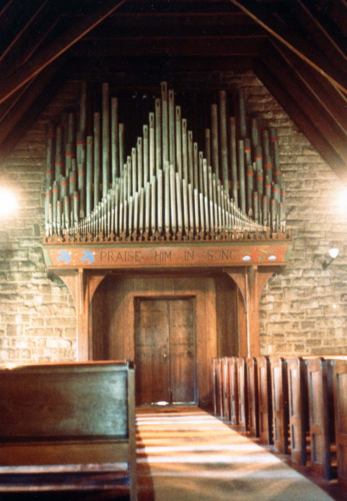 The organ, placed in the choir area of the west end of the Chapel, was joined with the pipes by a series of electric wires that ran to the far east end of the Chapel. The organ, over the years, was played continuously by many staff, guests, experts, and novice students. By the mid-seventies, there were signs of deterioration in the delicate structural elements of the organ. There were warped wooden parts from the deep humidity of the north-side of the mountain, nibbles of rodents on the yards of wiring, and obvious signs of human abuse. The annual maintenance came from a trust established for organ maintenance, but time took its toll. Nevertheless, the organ continued to be used for weddings, funerals, religious services, and the annual Nativity play. By the mid-1960s the organ was 30 years old and it was time to celebrate its importance in the organ world and to raise awareness of the care of the historic organ