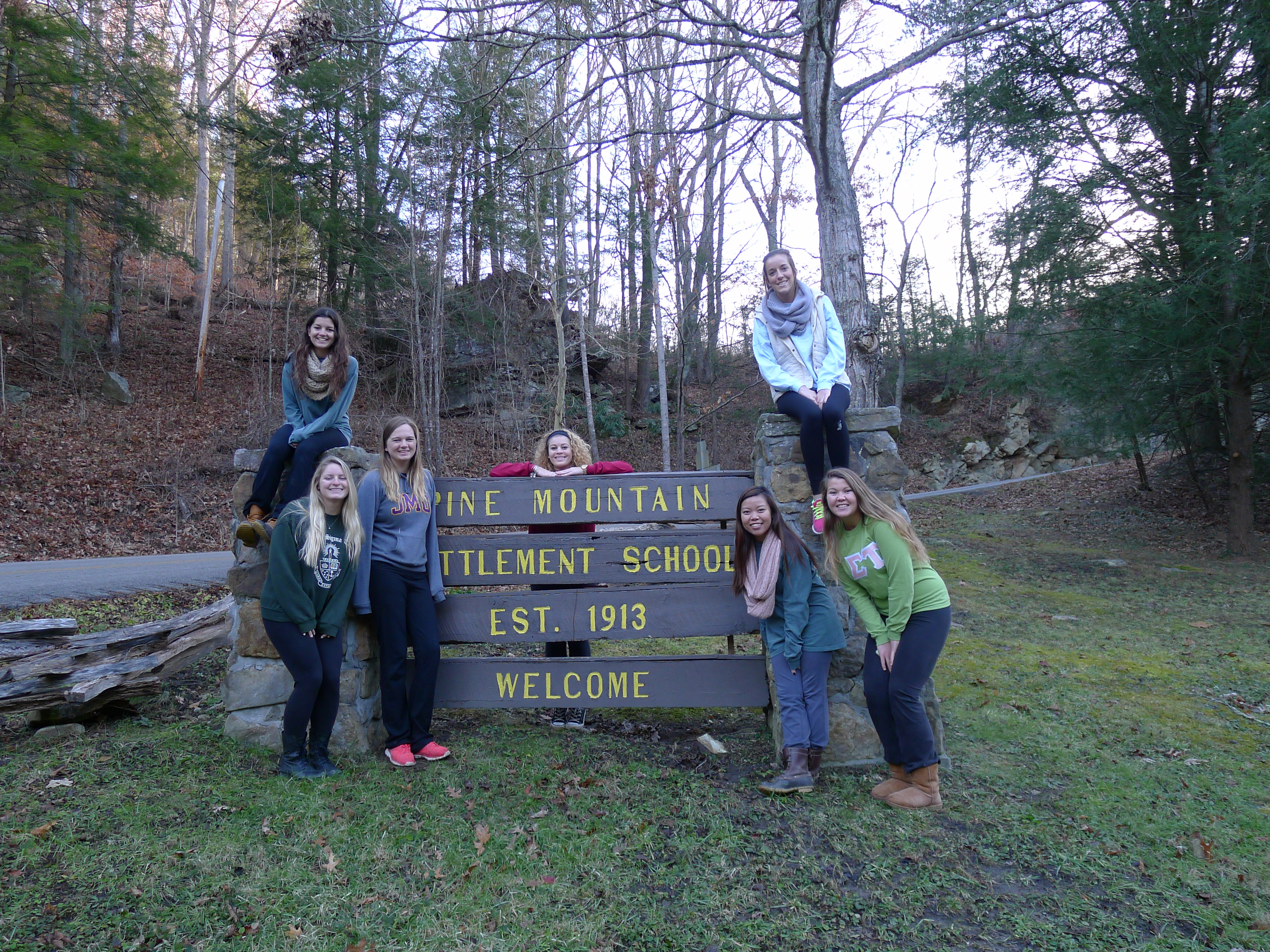 Since 1945 the national sorority Alpha Sigma Tau (AST) has been a strong supporter and advocate for Pine Mountain Settlement School. With nearly 90 chapters throughout the United States Alpha Sigma Tau selected Pine Mountain as the primary philanthropy for the sorority and Habitat for Humanity as its primary service focus. Since 1945 Pine Mountain has been enriched by the close relationship with this philanthropic sorority and the many visits by members of various national chapters.Pine Mountain has been very fortunate over the years to have the chapters visit the School and to have them participate in programs or provide designated service to the institution. For example, in the Spring of 2014 the School welcomed Radford University‘s Alpha Sigma Tau chapter to the campus. Pine Mountain was again fortunate in November of 2014 to have another group from AST on campus, seven AST members from James Madison University in Virginia. In March 2015 sisters from the Grand Valley University chapter of Alpha Sigma Tau came to work on the archive and grounds of the School.