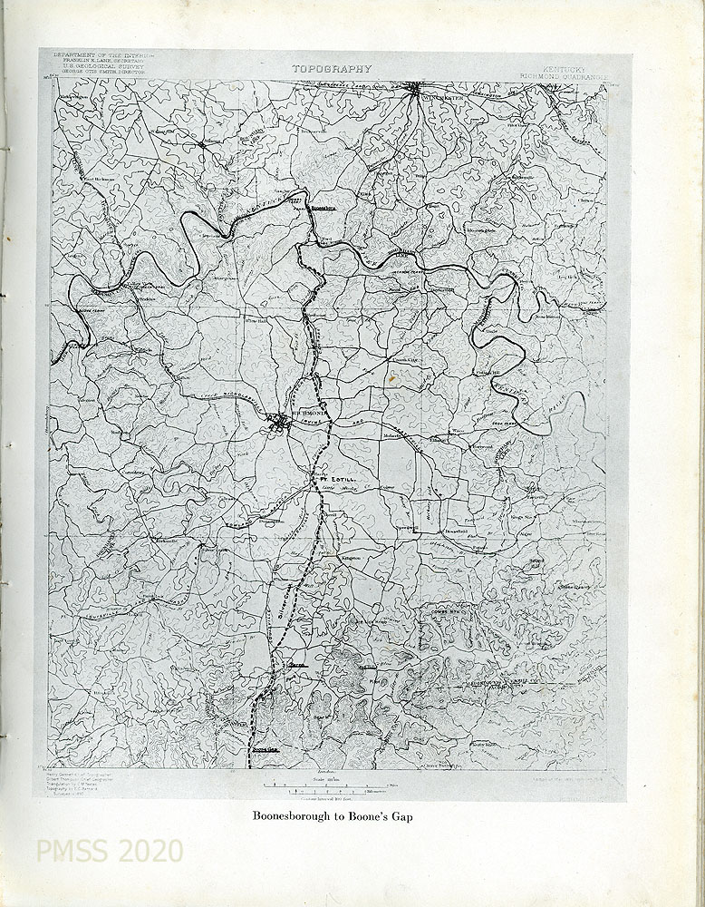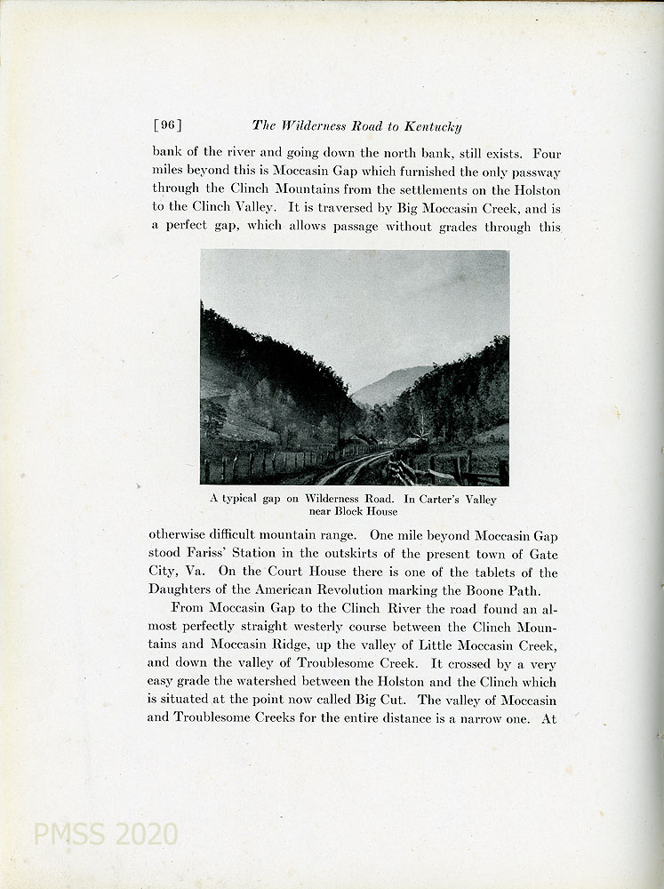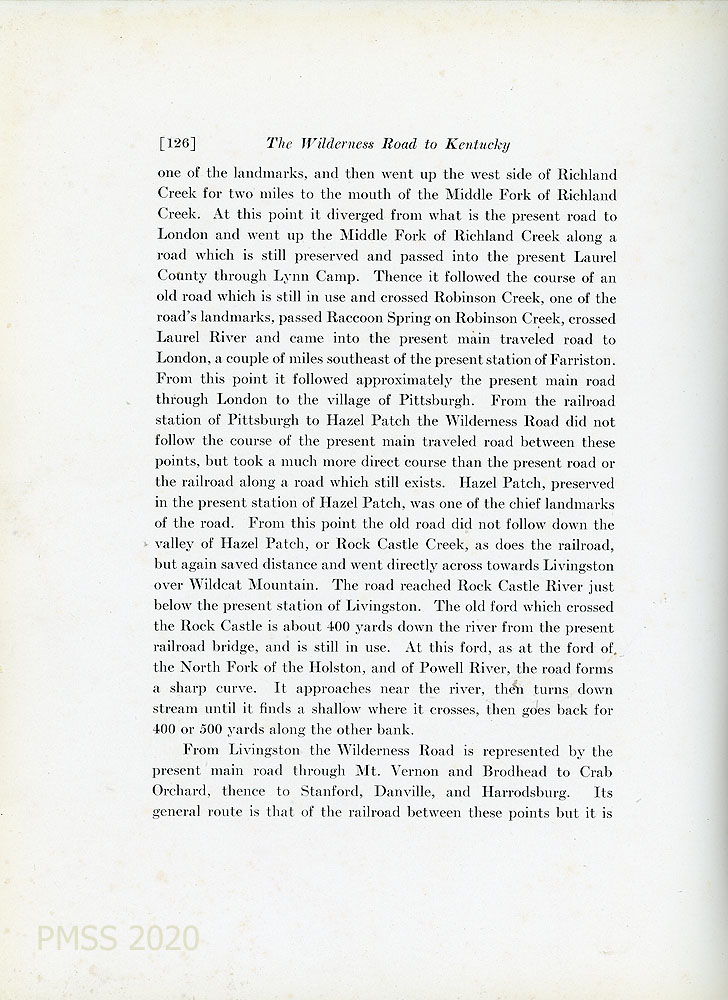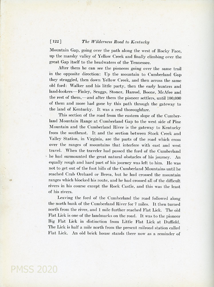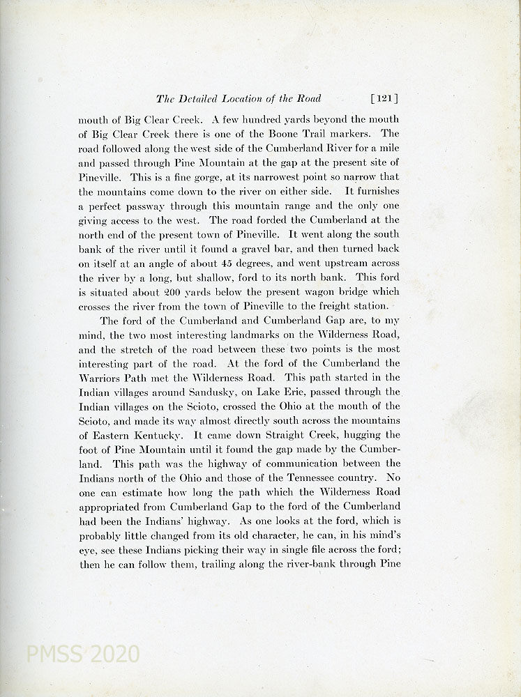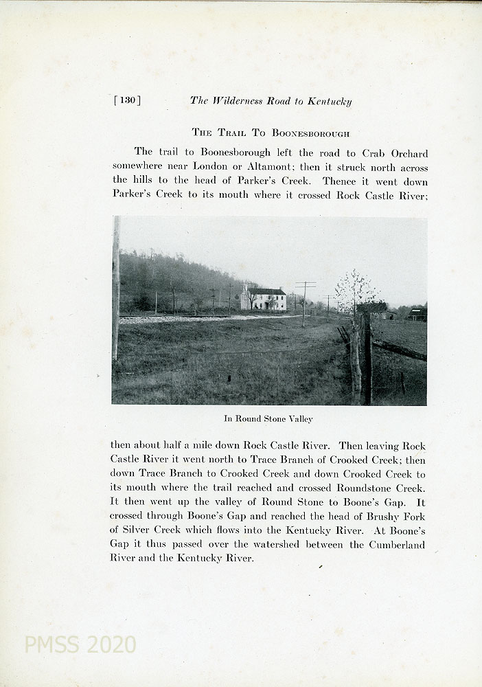 TAGS: Wilderness Road to Kentucky, 1921, maps, description of pioneer road, William Allen Pusey, geography, pioneers, William Brown, Daniel Boone, Thomas Walker, early travels, pioneer settlements, Native Americans, horses
