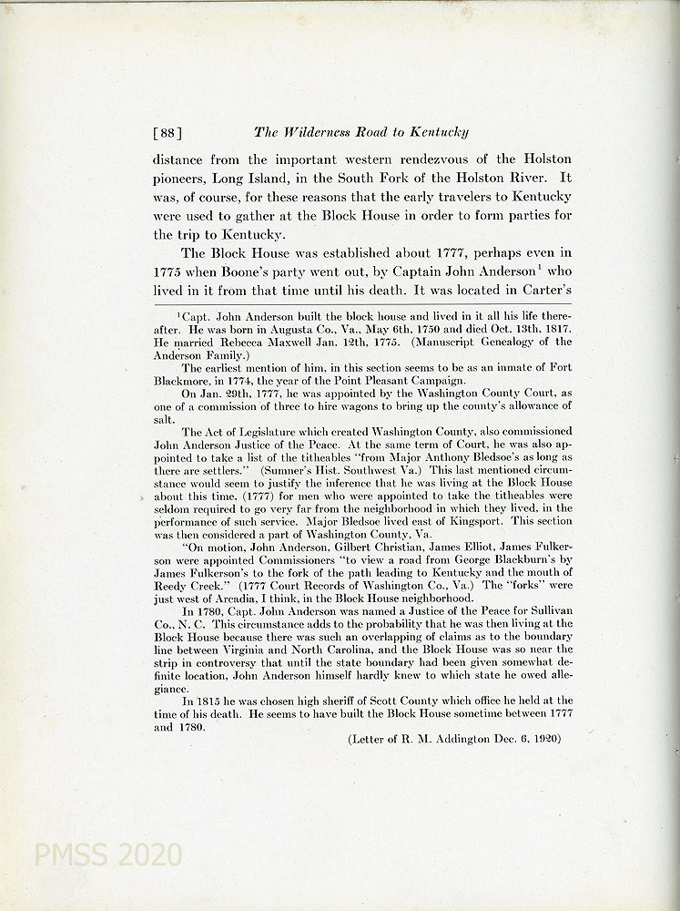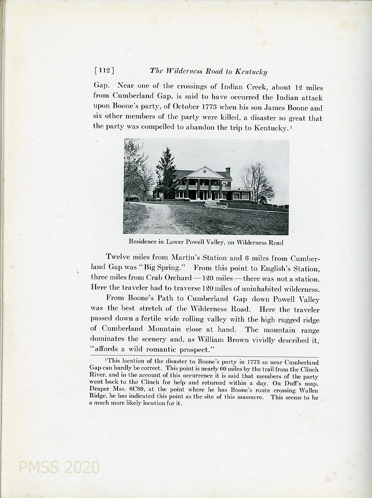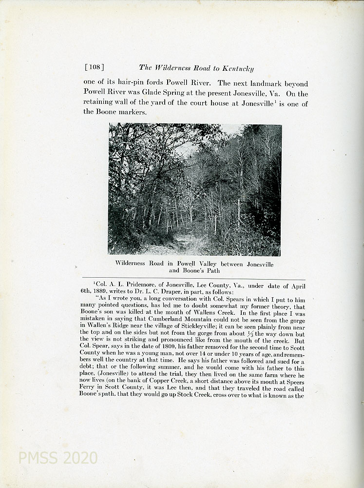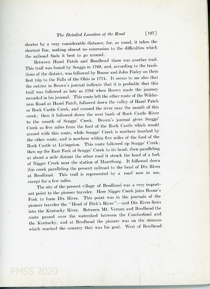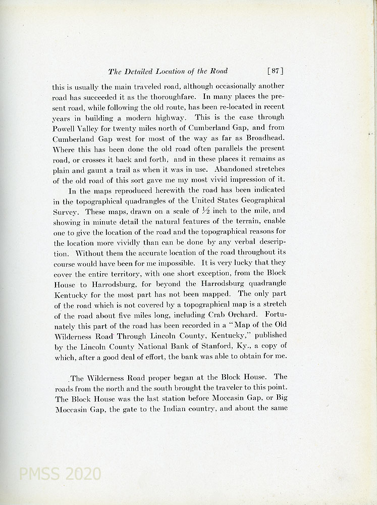 TAGS: Wilderness Road to Kentucky, 1921, maps, description of pioneer road, William Allen Pusey, geography, pioneers, William Brown, Daniel Boone, Thomas Walker, early travels, pioneer settlements, Native Americans, horses