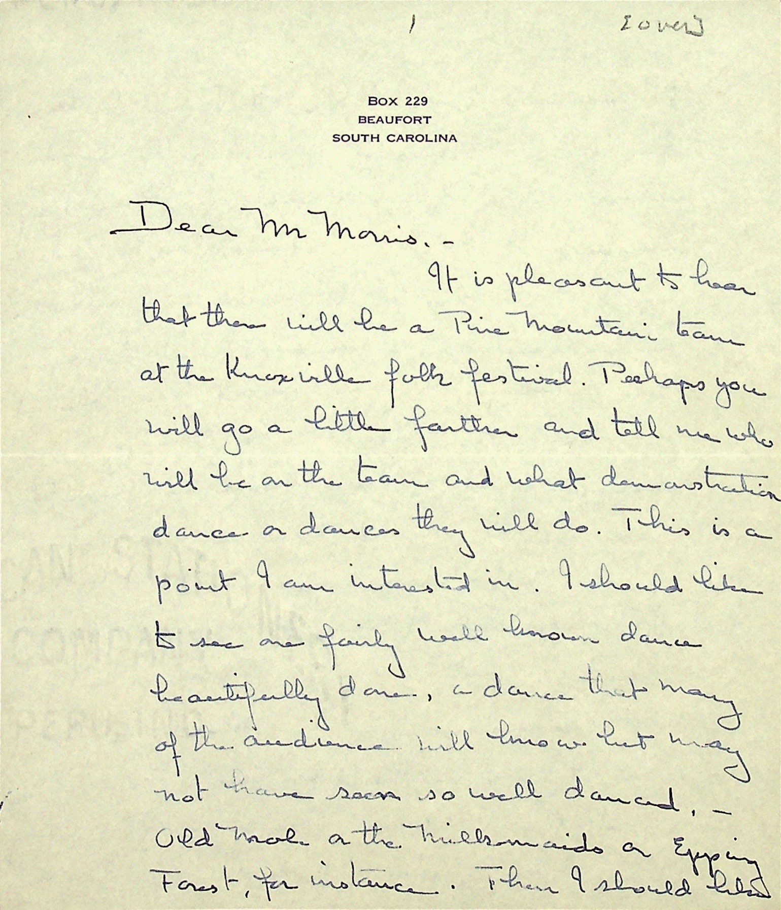 TAGS: Abby Winch Christensen Correspondence 1937, English Country Dance, dancing, Beaufort SC, Greenville SC, folk festivals, May Day