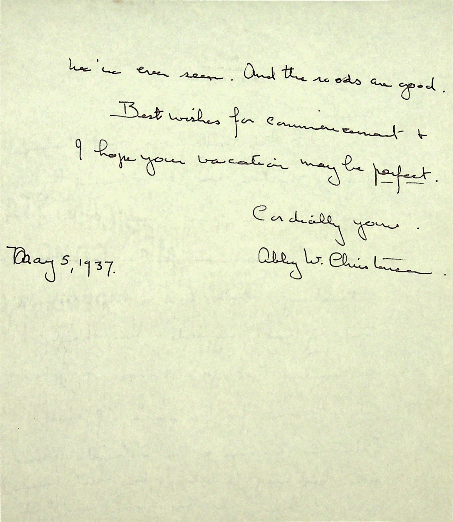 ABBY WINCH CHRISTENSEN Correspondence 1937