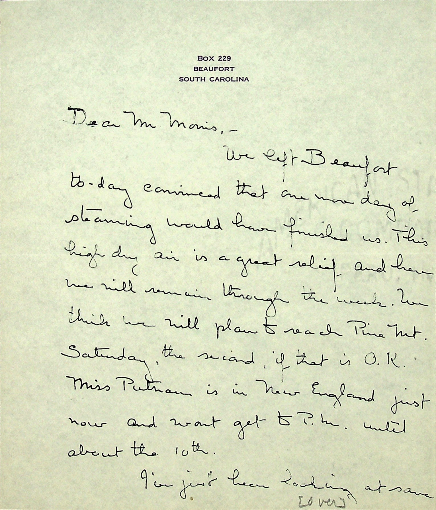NOTE: The address on letters to and from Christensen is Beaufort, SC, unless otherwise noted. PMSS letters are carbon copies of typewritten pages meant for the PMSS office files and therefore unsigned. Letters from Christensen are handwritten.