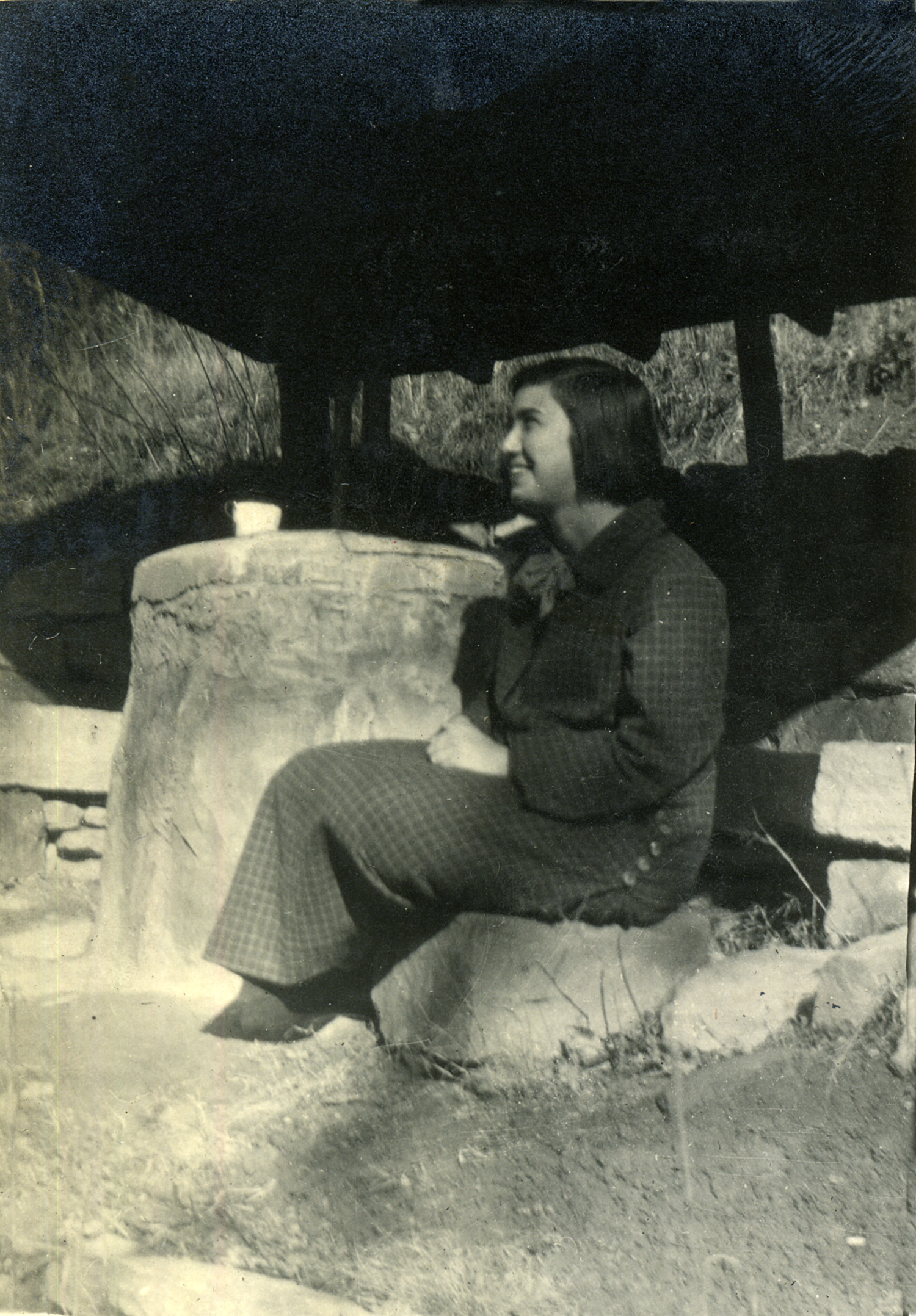 Medical Settlement, Big Laurel. Aileene Lewis seated at the Well House at the settlement. [nesb_036_mod.jpg]