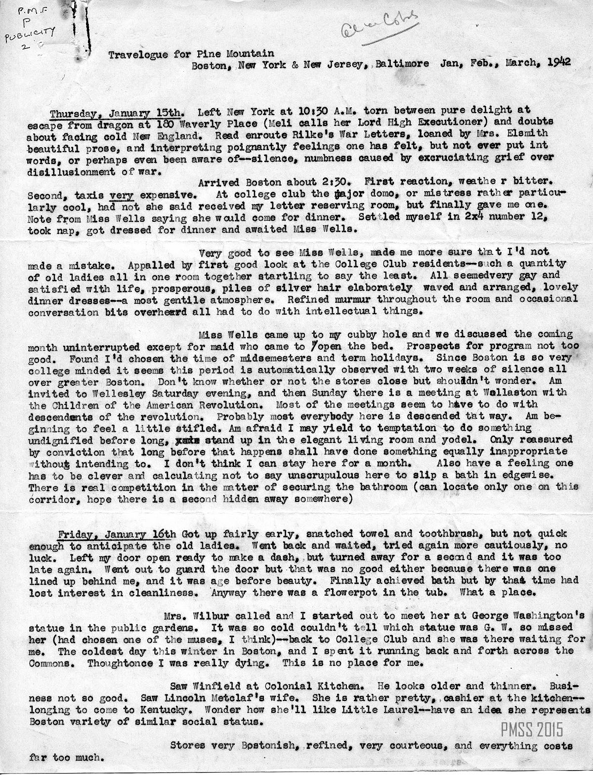 TRANSCRIPTION: Alice Cobb – Travelogue, 1942