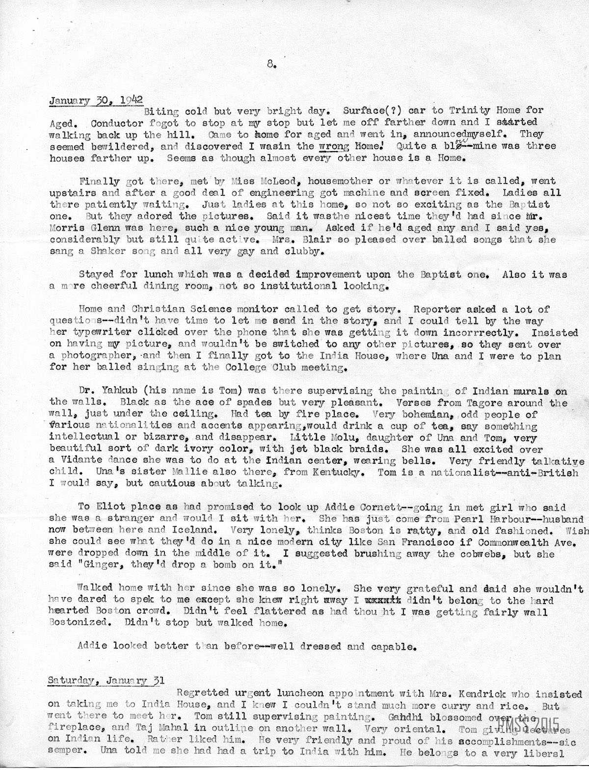 TAGS: Alice Cobb Travelogue 1942, Alice Cobb, travelogues, fundraising, Boston MA, New York City, Wellesley College, Dorothy Olcott Elsmith, Evelyn Wells, Daughters of the American Revolution, DAR, Children of the American Revolution, CAR, Maddy [Maddie] Cadden, Daughters of the Mayflower, Merle Easton, Dr. Tom Yahkub, Michael Martin, Raymond Ingersoll, Malcolm White, Agnes Foote,