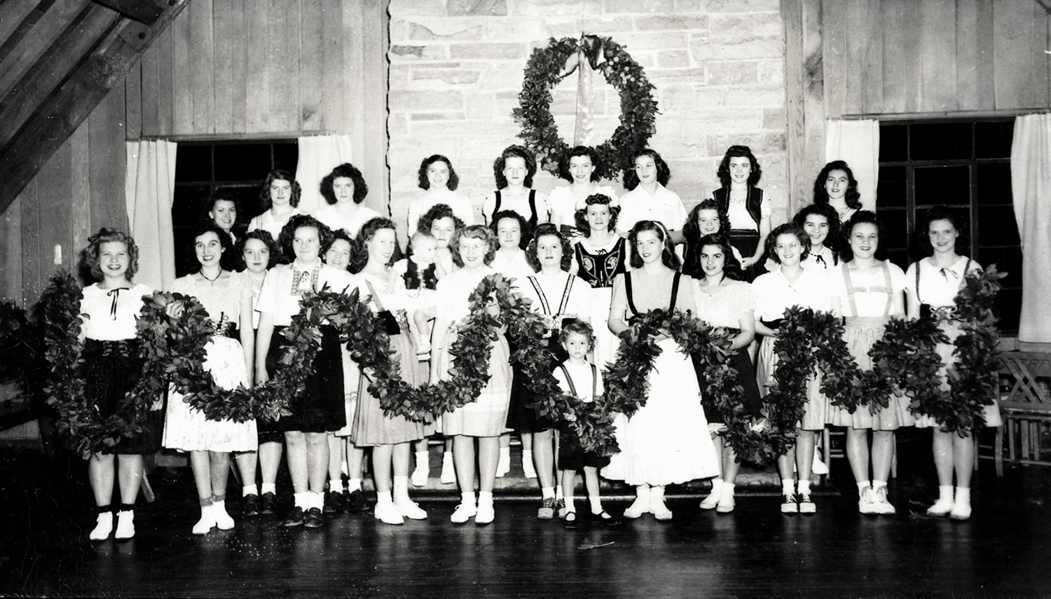 - The West Wind Garland, Christmas, 1946. Delores Scott, Betty Logan, Ann Creech, Gladys Carroll, holding Margaret Dodd, Grace Tyree, Wanda Lee Collier, Elizabeth Dodd, Jolene Lucas, Jenie Lou Blanton, Mary Howard, Emily Bailey, Lois North, Ann Metcalf, Margie Bennett, Frances Selvey, Charlene Lewis, Mrs. Dodd, Mary Ruth Bird, Clella Sergent, Betty Huff, Margaret Blair, Ida Mae Lewis, Alberta Turner, Birdie Tipton, Pearl Taylor, Margaret Ison, Ernestine Vitatoe, Hane Burkhart. (In Laurel House.) [nace_1_024b.jpg]