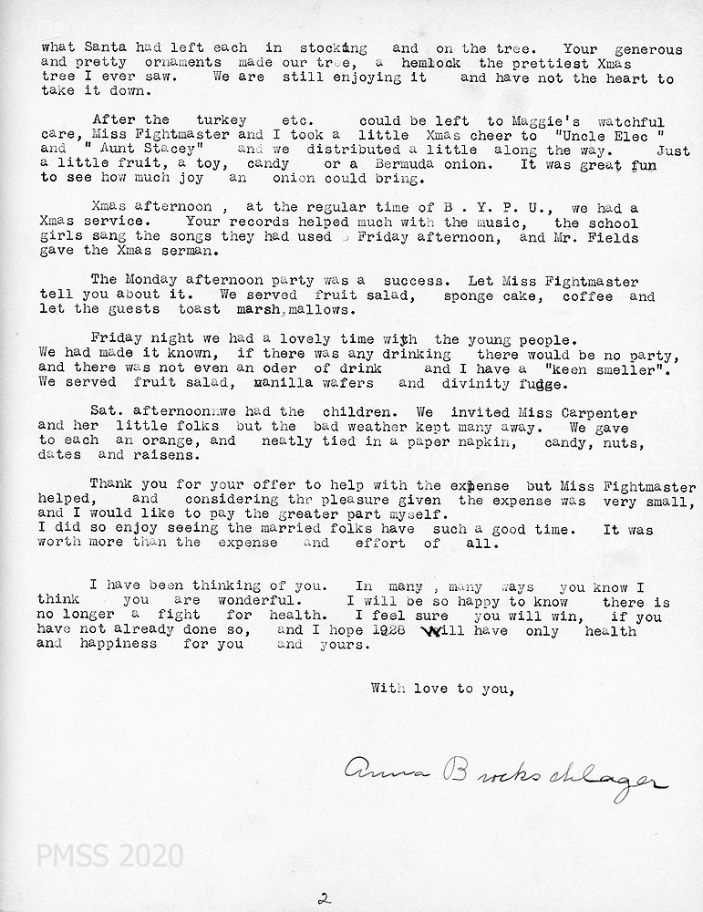 Anna Brockschlager, Housemother at PMSS 1924-1925