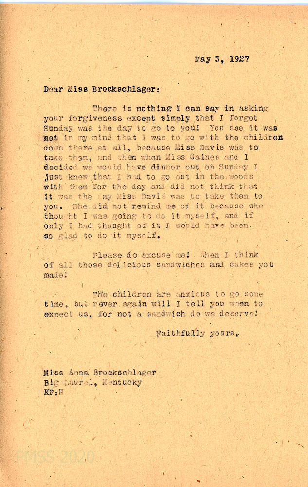 [059] May 3, 1927. To Anna from KP (Pettit), who apologizes for not visiting on Easter and gives the reason.
